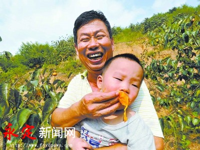 視頻加載中... 滿山的柿子紅了,老李帶著從臺(tái)灣前來(lái)探親的兒子上山品嘗,兒子狼吞虎咽的樣子逗得老李哈哈大笑。