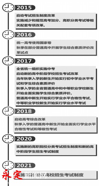 省教育廳有關負責人提醒,現在在讀高中學生及2016年、2017年入學的高一年級學生仍執行目前高考方案。在實施新的高考綜合改革方案前,過渡期內,各中學和考生要按照目前的高考方案要求安排好教學和備考工作。