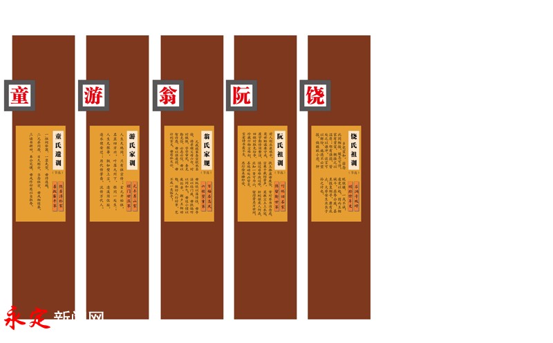 視頻加載中... 52童 童氏遺訓(節選) 1.祖祠祭器,一稟先型,毋得違越。 2.兄弟同居,日久則分,當念祖宗,毋或相侵暴。 3.讀書耕田,奉公完課,毋或作奸慝以自取辱。 53游 游氏家訓 人生天地間,只有祖宗傳;玄元開始祖,名顯四方興。 葉落九州下,根同一處生;人生無根蒂,飄如壁上塵。 逢溪須住址,逢水便安遷;歷代傳芳裔,流傳萬代人。 54翁 翁氏家規(節選) 凡我族輩各宜欽承圣諭,將孝順父母六句,時時佩服,字字審究,務克勤克儉,必忠必信,毋以智詐愚,毋以強凌弱,毋計利害義,毋茍私滅公,毋縱飲以蕩情性,毋導淫以玷門庭,毋執偏聽以間和氣,毋逞小憤以廢懿親,朝夕互相勸勉,做好人行好事,豈不成一美俗乎! 55阮 阮氏祖訓(節選) 前人創業最艱辛,奕世貽謀要守成,屋宇勤修須整潔,田租時取免紛爭,珍藏什物塵難朽,寶愛詩書蠹不生,執玉捧盈毋廢墜,宗乘千載紹芳聲。 慎過非難改過難,應知一簣可為山,善端動處兇皆吉,惡行除來睡即安,常對琴書消念慮,莫教塵土上衣冠,斬蛇驅虎人何在,留得芳名萬世間。 56饒 饒氏祖訓(節選) 鄉黨宜和。竊念此閭相接,緩急可恃。家有貧富,概接之以溫厚;鄰有強弱,皆處之以謙沖。談言可以解紛,施德不必望報。倘睚眥小忿,狎昵繳嫌,一或不誡,凌競以起,因而互相械斗,屈辱公庭,甚至報復相尋,靡有底止,大非安生業長子孫之計也。 |