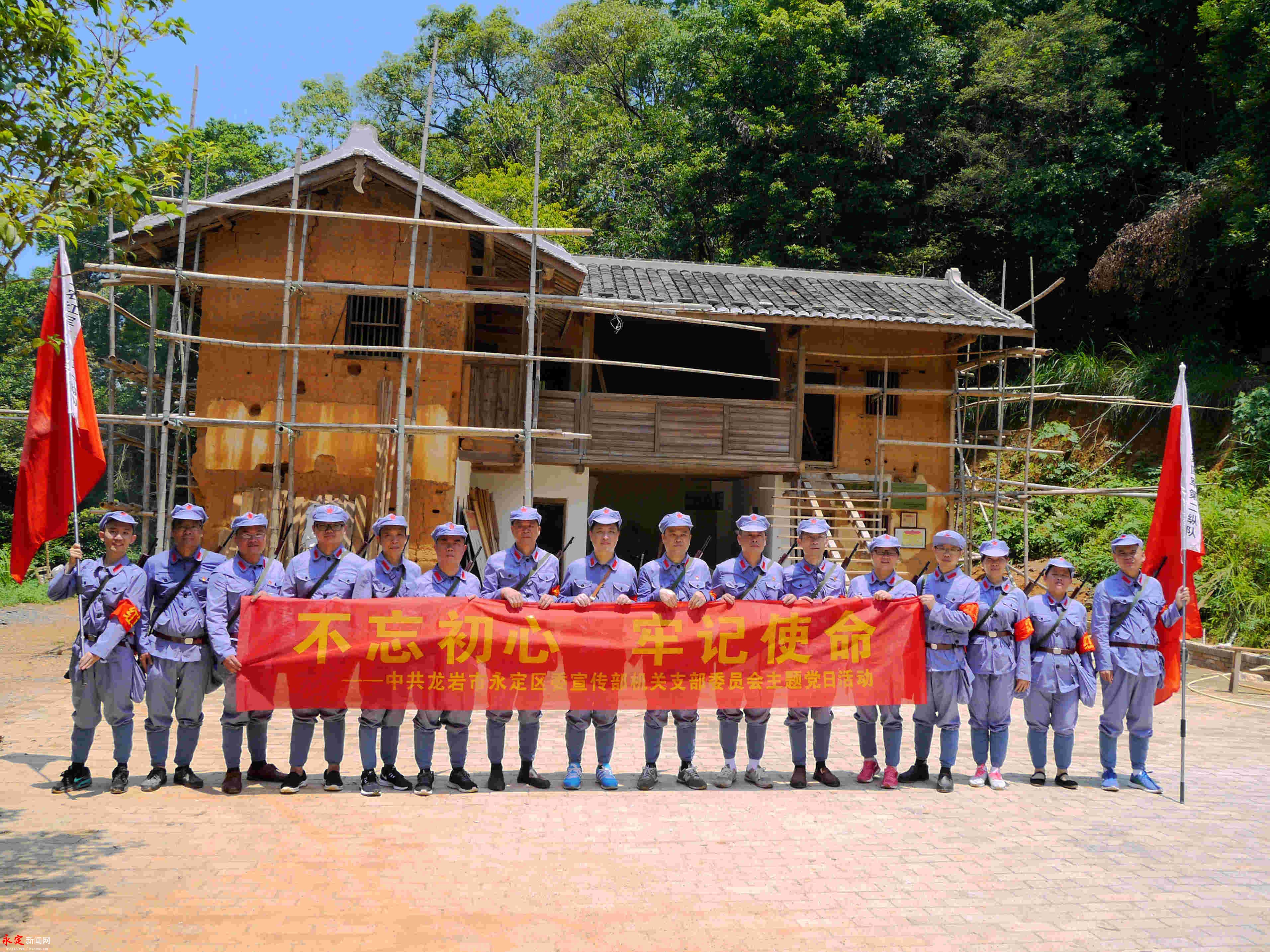 區(qū)委宣傳部機關黨支部開展“不忘初心、牢記使命”主題黨日活動。劉永良 攝 永定新聞網訊(劉永良)永定是中央蘇區(qū)紅色交通線中的重要一段,從廣東青溪擺渡汀江到陸路入閩第一站永定伯公凹交通小站,經永定城區(qū)到金砂鄉(xiāng)古木督永昌樓,沿山間古道經西溪鄉(xiāng)赤寨往合溪鄉(xiāng)孟良公祠,最后離開永定前往長汀抵達中央蘇區(qū)紅都江西瑞金。其中,伯公凹小站留下了蕩氣回腸的“一盞油燈”“三塊銀元”與“一門七烈士”紅色經典故事。懷著對革命先烈的敬仰之情,7月10日,中共龍巖市永定區(qū)委宣傳部機關支部委員會組織黨員來到這里,開展“不忘初心、牢記使命”主題黨日活動。