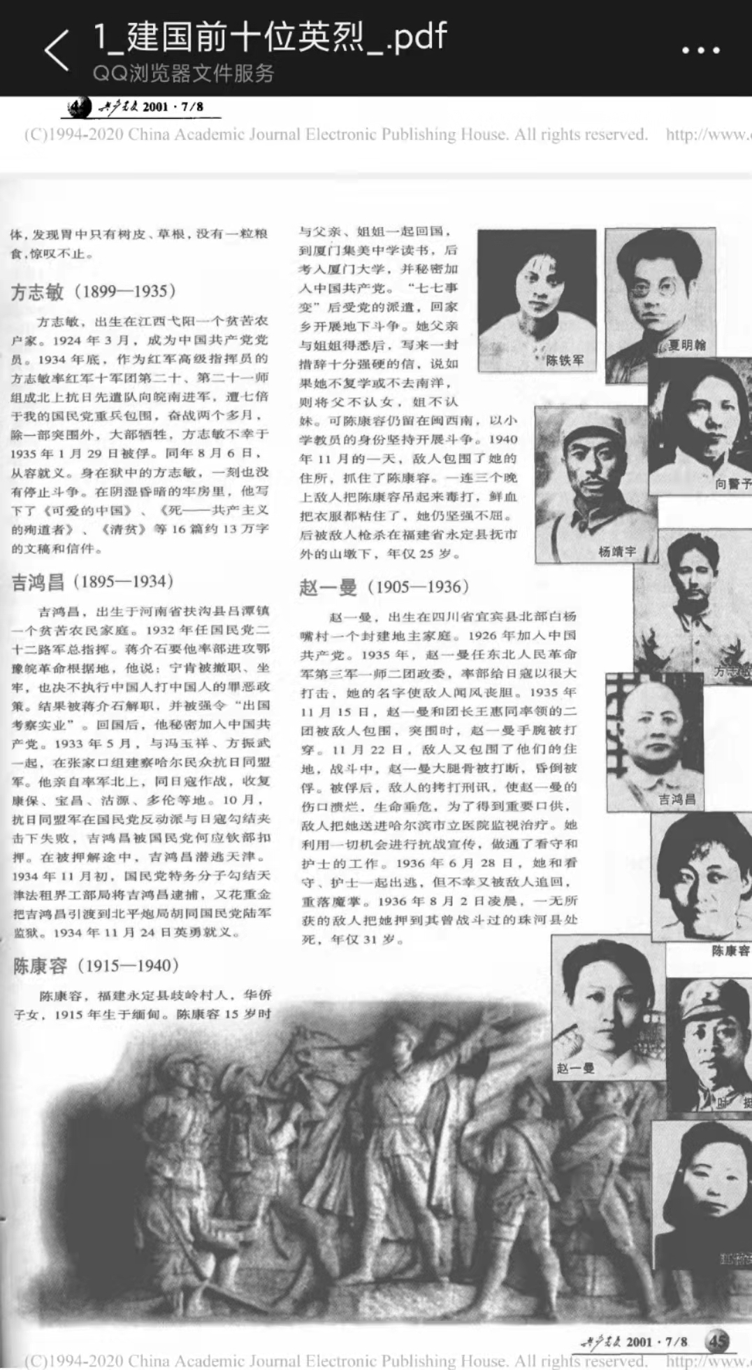 視頻加載中... 尋找烈士陳康容 ——紀念陳康容烈士犧牲81周年 □ 付華順 我與永定的緣分,緣起于作為福建省第六批駐村第一書記,組織部門將我派駐到永定區岐嶺鎮下開展三年駐村工作。下村之前,我有做一些地理與村情的功課,通過網絡與衛星地圖了解下山村的地理位置、經濟、民風與人口情況。從中我知道了下山村的革命史、英雄人物與紅色故事。在我的想象中,作為中央蘇區核心區的永定,紅色文化基因肯定是到處可見的,有眾多的烈士也不稀奇。但當我真的下到村里任職的那一刻,我還是被深深地震驚,一個下山村竟有59位烈士。更有一位在當地盛傳的烈士名字-----陳康容,曾在建黨80周年時,被《共產黨員》雜志列為建國前十大英烈之一。