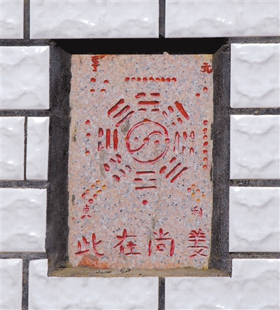 由此,民間便得出結論,姜太公威鎮諸神鬼怪,只要他在此,鬼神就不會興妖作孽了。從那以后,人們為了避窮神、圖吉利,就在門上、屋內貼上“姜尚在此”“姜尚在此,百無禁忌”的字條,以杜窮神之害。但字條容易損壞,人們蓋新房時干脆將這些偈語刻在石塊或磚上,作為消災避害的瑞符砌于墻壁,這一風俗一直沿襲至今。