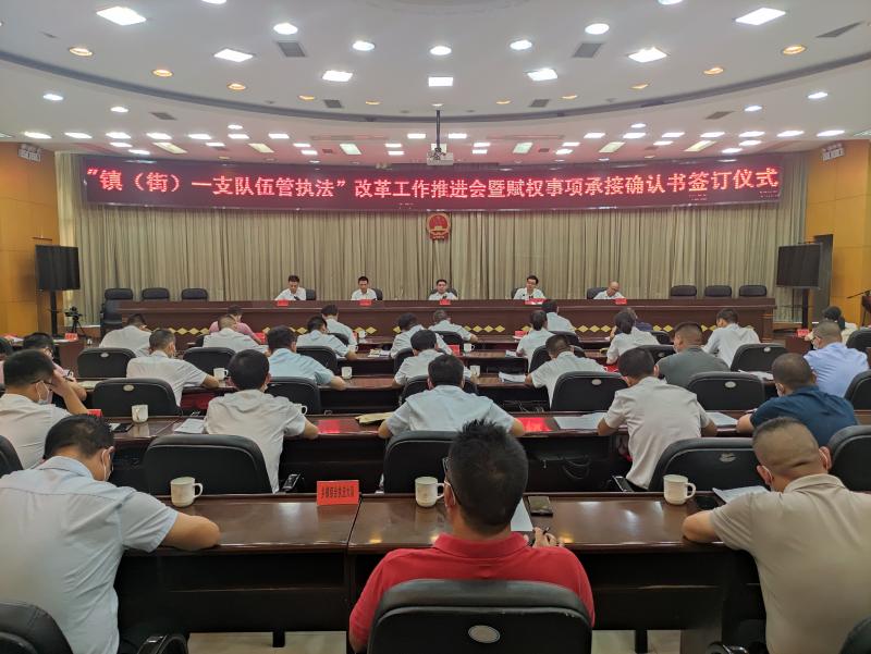 視頻加載中... 永定新聞網訊(江舲 張河斌)9月20日上午,永定區召開“鎮(街)一支隊伍管執法”改革工作推進會暨賦權事項承接確認書簽訂儀式。區委書記李強參加會議并講話,區委副書記、區長李宏泰主持會議。