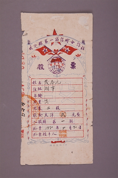 永定縣第一區信用合作社發行的股票