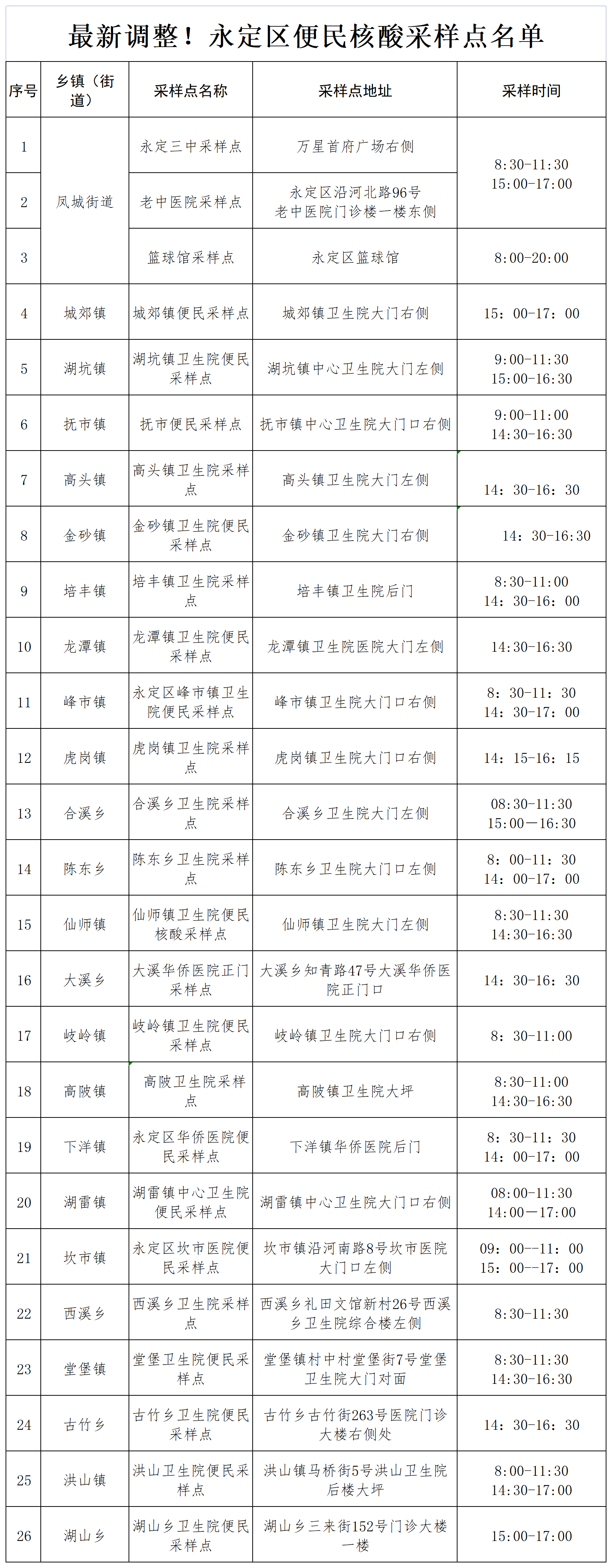 最新!永定區核酸檢測服務有調整→