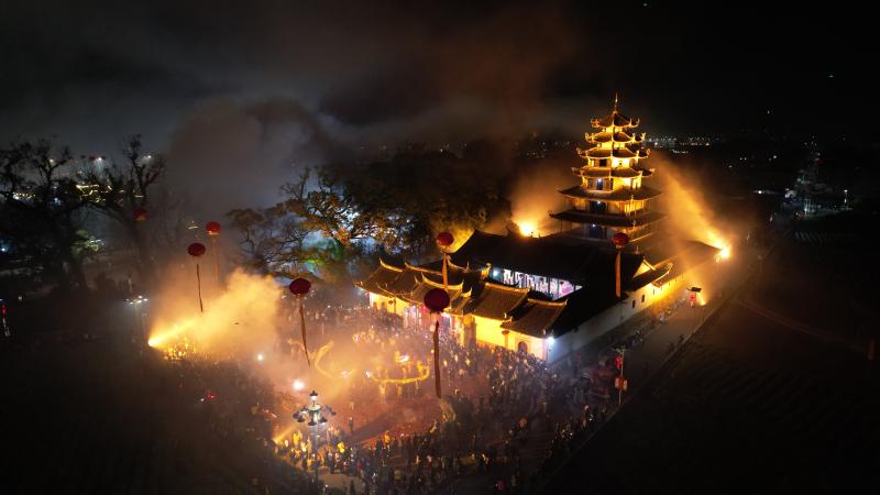 一支支舞龍隊從四面八方匯聚于此,爭相勁舞,左右翻飛,漫天的硝煙和焰火,使整個西陂天后宮宛如仙境,來自各地的游客沉浸式體驗著客家傳統民俗文化的魅力。“確實是前所未有的熱鬧,特別激動。”應同事邀請到西陂做客的林先生被盛大的狂歡深深吸引了。