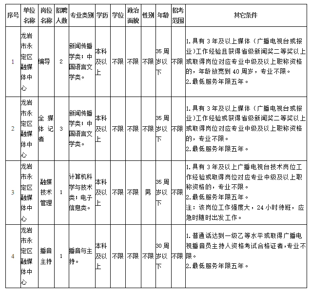 龍巖市永定區(qū)融媒體中心公開招聘事業(yè)編制工作人員方案