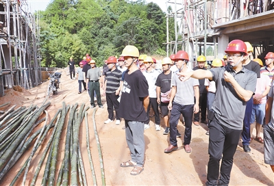 8月2日,永定區住建局實施的第二期農村工匠培訓在陳東鄉舉行,培訓內容包括組織農村工匠到巖太村觀摩云上庭院民宿項目,聘請高級工程師現場點評該項目的外墻腳手架、鋼筋捆扎、砌磚、包漿、承重墻、模板、橫梁等,總結農房安全事故經驗教訓,傳授農村建房選址、設計層高、間距、朝向、梁柱澆筑等專業知識,分析工地排水設計、臨時用電架設與維護等常識。本次參加培訓的為金豐片區,包括下洋、湖坑等8個鄉鎮,共47人參訓,含泥水匠、瓦工、混凝土工、水暖工、油漆工等工種。 通訊員 林忠成 張河濱 攝