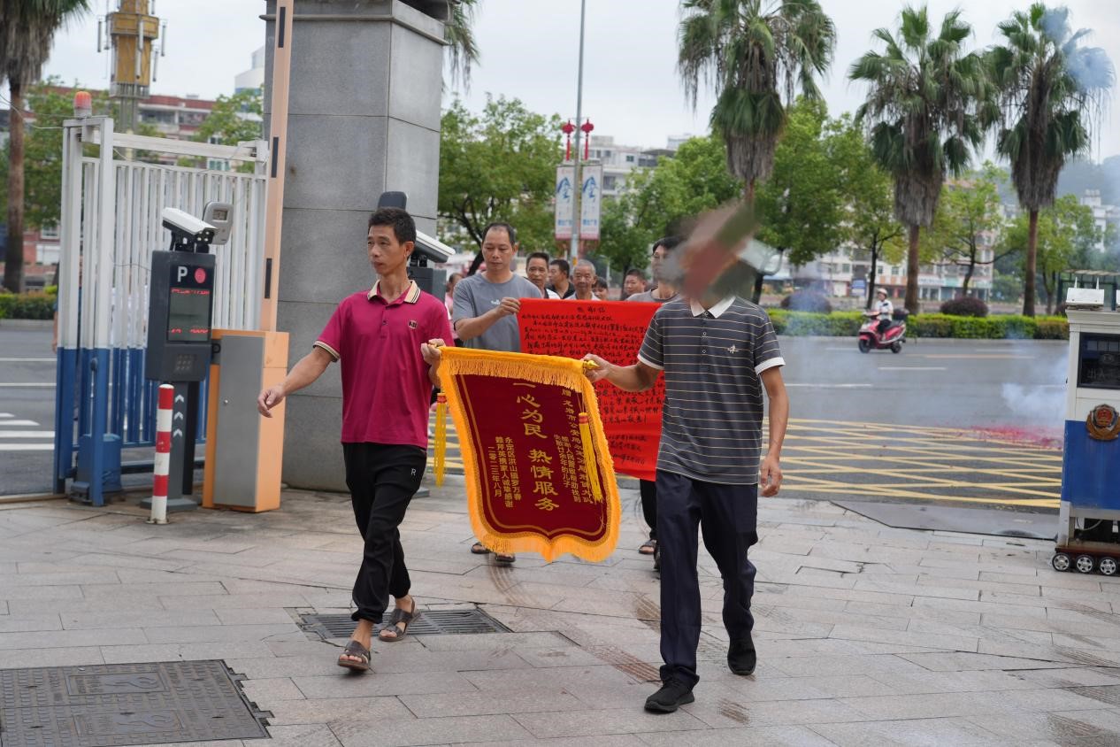 視頻加載中... 永定新聞網訊(盧燁)8月21日,在永定公安分局門口,永定區洪山鎮失蹤人員羅某某及剛相認的家屬們滿懷激情地將一張感謝信、一面寫有“一心為民 熱情服務”8個字的大紅錦旗送到了民警手中,感謝他們讓失蹤了20多年的羅某某重新找到家人,一家團聚。 洪山鎮失蹤人員羅某某高興的說:“我非常感謝永定公安的同志,讓我回到家鄉,不然的話,我現在還在外面,非常感謝,我感到很幸福,現在能見到父母,沒有留下遺憾。”