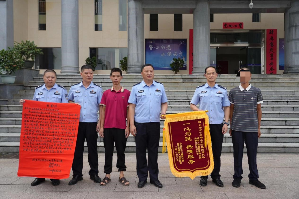 經“羅某某”親屬核實,這個人就是他們失蹤20多年的親人。通過進一步了解得知,20年前,羅某某因與家人產生矛盾負氣出走,音信全無,其父母承受著20年骨肉分離、家庭破碎的痛苦和煎熬。此次尋回羅某某,其父母難掩團圓重聚的喜悅和激動,老淚縱橫,為公安機關送上錦旗,詮釋了 “服務人民”的刑警力量,也為仍在尋親的父母、孩子傳遞了信心和力量。 “我們始終秉持著人民為中心的工作理念,依靠現代化科技手段,結合傳統偵查方法,窮盡一切手段,不懈努力終于找到了失蹤人員。”永定公安分局刑偵大隊打擊侵財性犯罪中隊副中隊長吳雁彬表示,將進一步認真梳理分析,持續開展失蹤人員的查找工作,讓更多的家庭能夠順利團圓,從而提升人民的幸福感和獲得感。