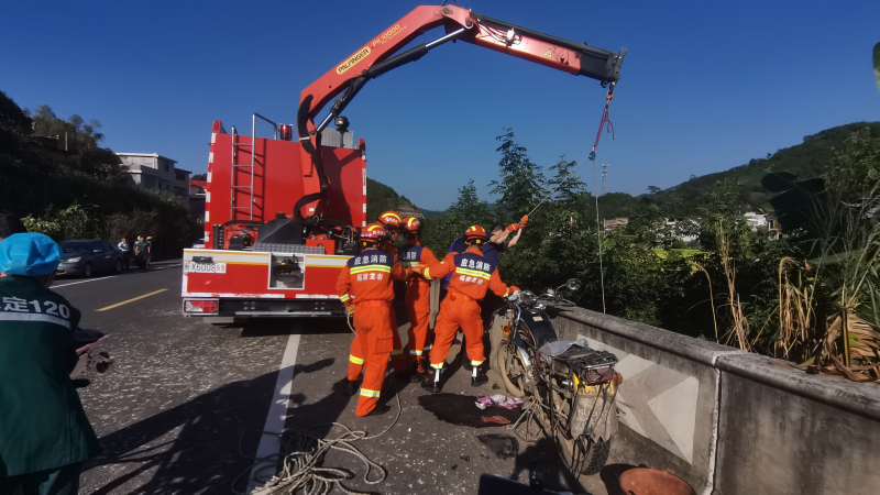 永定:兩車相撞一人摔落橋下 消防伸出援手緊急施救