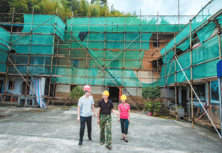 澤東樓修繕期間,不時有游客前來參觀,駐村書記(左)義務講解
