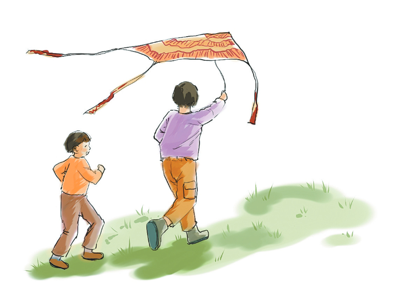 客家博覽園的山頭不高,靜臥在金豐溪側,山勢不陡,原有的灌木叢大多改成了綠草皮,新植的樹也還未長高,水氣帶來的風很利于放風箏。我流連在博覽園的百家姓長廊里,感受中華姓氏文化,大兒子帶著小兒子拿著風箏,沿著博覽園后山長廊往山上爬,可見兄弟倆甚是興奮。一會到得半山腰,大兒子前面拉著線團,預先放些線,小兒子配合著在后面托舉起風箏,兄弟倆商量好,哥哥跑動時,線一拉緊弟弟就放開風箏。一開始大兒子往順風的方向跑,風箏老是起不來,線一直拉不緊,大兒子很氣餒。旁邊一位放著風箏、中學生模樣的同學看見了,熱心地告訴他:“你放風箏不能順風方向跑啊,要逆風向跑,風箏才容易往上爬啊。”兒子聽后改變方向試跑,果不其然,風箏開始“噌噌噌”地往上爬,不斷升高,線越拉越緊,尾巴不斷搖動,風箏薄布被不斷撐開,似是要被從龍骨中撒扯開來一樣。小兒子指著風箏歡快地又笑又跳,放開喉嚨叫著:“飛起來了,飛起來了!”中學生又道:“快放線。”大兒子依話放線,只見風箏線突然緩下來,風箏急速往下掉。中學生再道:“快往后跑,手有規律向上拉扯線。”大兒子又依話照辦,風箏又開始往上爬了起來。一來二去,風箏開始再往高處爬,而后再往遠處延伸,大兒子手中的線團已去了三分之二多。此時我也已經到了兩兄弟放風箏的地方,小兒子看我走近,指著風箏自豪地對我說:“爸爸,我和哥哥也會放風箏了。”