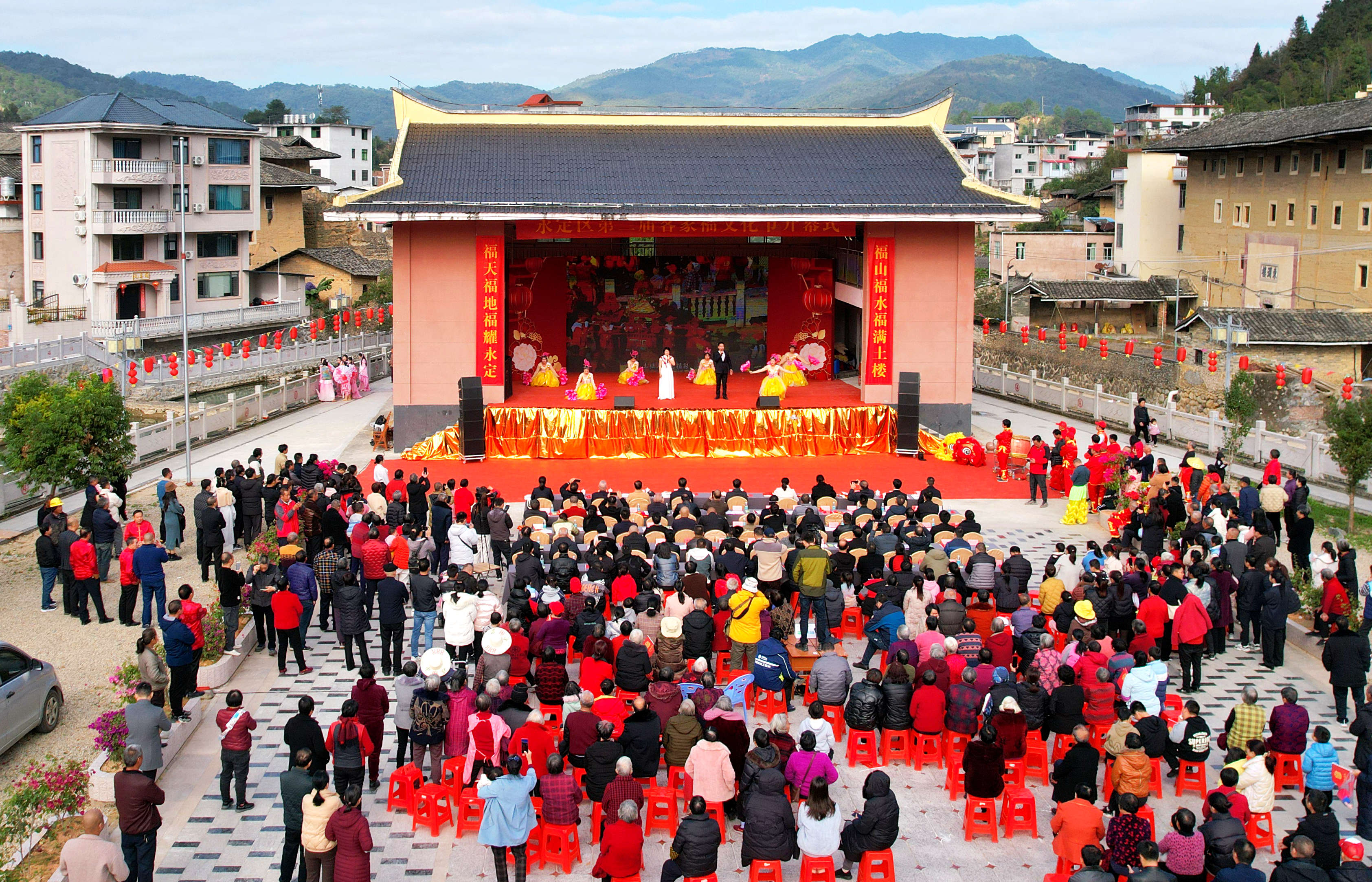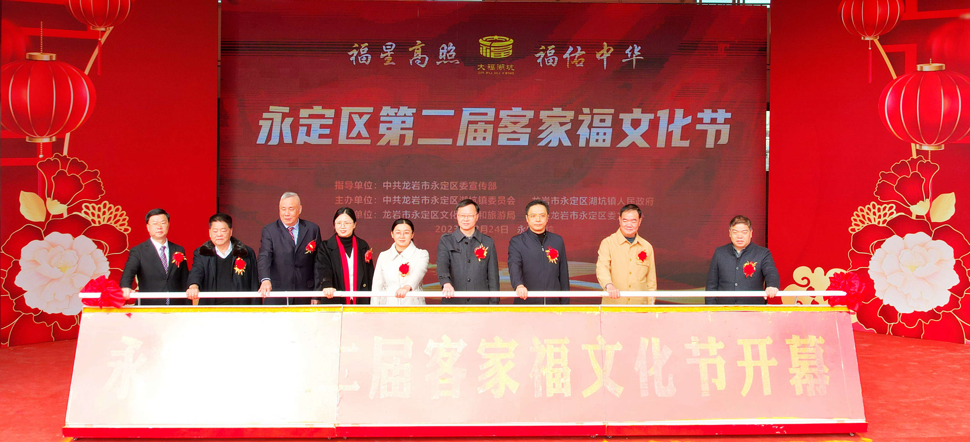 文化節(jié)開幕現(xiàn)場,湖坑鎮(zhèn)黨委、政府聘請了6位客家福文化宣傳使者;發(fā)布、展播了湖坑鎮(zhèn)鎮(zhèn)歌《我在福地等你來》現(xiàn)代版和山歌版; 進(jìn)行了福文化館開館活動(dòng);舉辦了文藝演出,通過第一篇章“祈福”、第二篇章“送福”、第三篇章“接福”、第四篇章“納福”的精彩演繹,讓現(xiàn)場彌漫著“福”的氣息,洋溢著“福”的笑容,充盈著“福”的甜蜜。