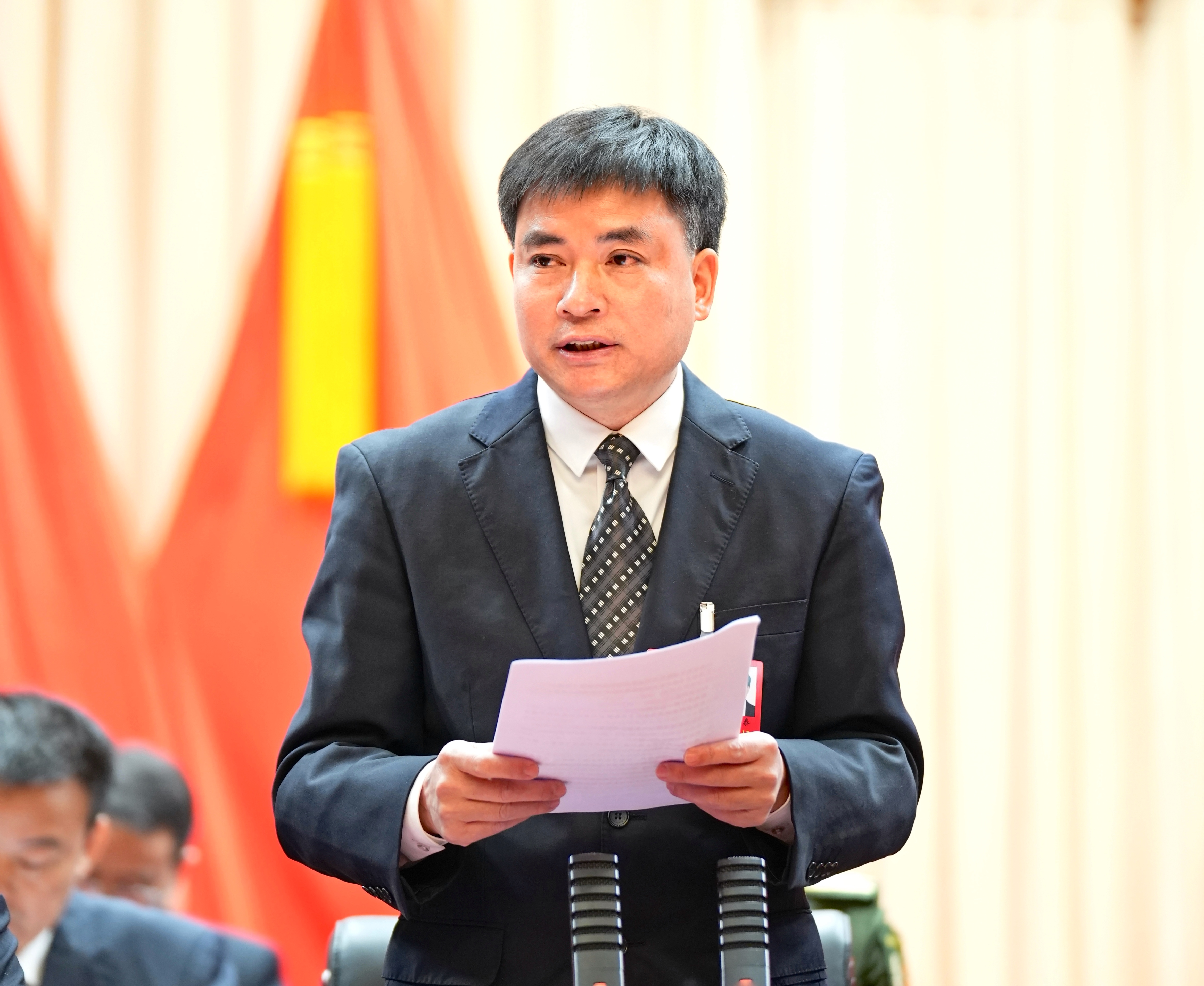 大會執行主席李強、李宏泰、鄭煌泰、蘭光、邱小洪、謝洪才、胡佐仁、江海輝、林如居、賴冠群在主席臺前排就座。區政協主席陳昌應邀在主席臺前排就座。主席團其他成員在主席臺就座。大會由執行主席鄭煌泰主持。