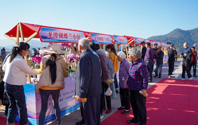 龍潭鎮緊抓對口支援機遇,并以蝴蝶蘭產業園列入廣州-龍巖對口合作項目為契機,找準目標定位,圍繞蝴蝶蘭產業鏈,從不同層面、角度、需求創建“蝴蝶花開黨旗紅”“龍潭蝴蝶蘭小鎮”“蝶戀花”等品牌,強化特色品牌宣傳,培育屬于龍潭鎮的獨特標識、專屬氣質。此次蝴蝶蘭文化旅游節融入了“清新福建”“福文化”“五彩龍巖”“永定土樓”等品牌及標識LOGO,大力宣傳省、市、區文旅主題,提升品牌知名度的同時也提高了龍潭“蝴蝶蘭小鎮”IP的辨識度。本次活動的聯合舉辦是省、市、區和天河、永定兩地推動文旅經濟發展、促進資源共享的縮影,讓蝴蝶蘭文化旅游節這場花事助推永定美麗蝶變搭上時代快車,將美好藍圖轉化為“山靈水韻,魅力永定”的現實圖景,是一場嘉賓云集、開放合作的盛典。