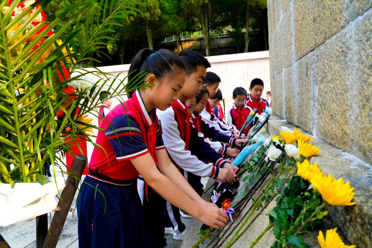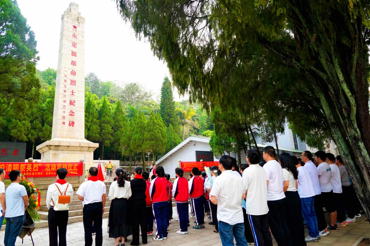 上午8時許,永定區(qū)革命烈士陵園格外莊嚴肅穆。在雄壯嘹亮的音樂聲中,全體人員肅立,高唱中華人民共和國國歌,在心底深切緬懷革命先烈的豐功偉績。緊接著,永定區(qū)實驗小學的少先隊員通過獻唱隊歌《我們是共產(chǎn)主義接班人》、分享學習烈士故事、重溫入隊誓詞等,表達新時代少年對革命先輩的無比懷念,也宣示著新一代青少年昂揚向上、奮發(fā)圖強的決心。