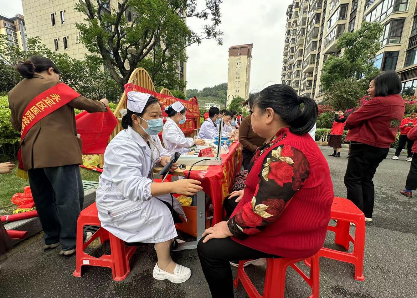 活動現場,醫療志愿者們耐心細致地接待每一位前來就診的社區居民,提出有針對性的診療建議。同時,還提供了量血壓、測血糖服務,并對腫瘤防治、高血壓、糖尿病、腦卒中等慢性病防治知識進行宣傳,引導居民養成健康的生活習慣,做到有病早治、無病早防。