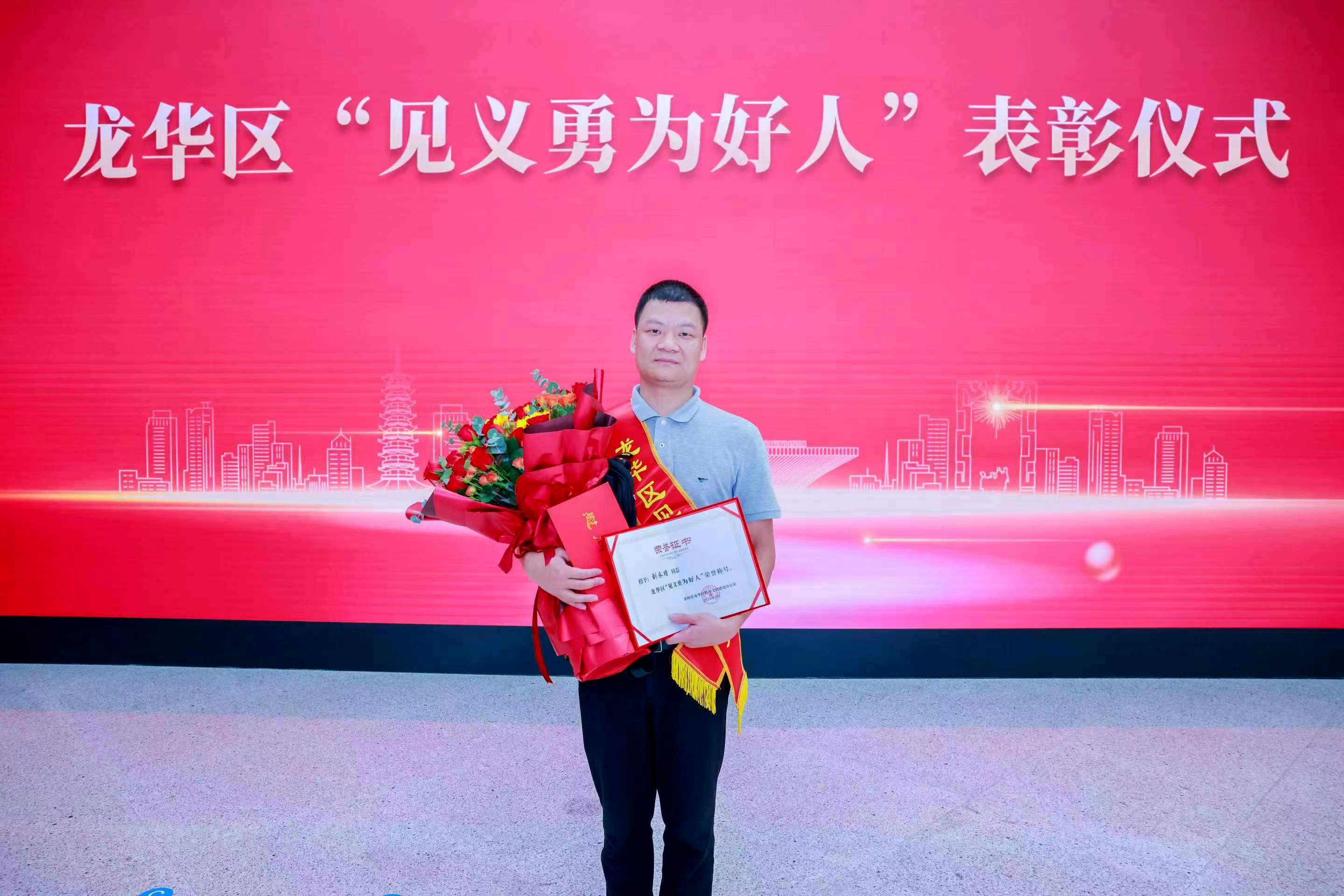 永定人劉永縉獲頒深圳市龍華區“見義勇為好人”證書
