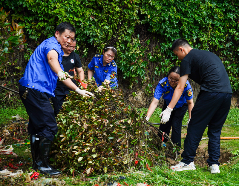 記者看到,河灘公園喬灌木掛滿垃圾而倒伏,厚重的淤泥沉積覆蓋公園。因此,區園林服務所黨支部召集黨員干部沖鋒一線,利用鐵鍬清理淤泥、鋤頭挖穴復墾、高枝剪清理掛樹垃圾,高壓水槍沖洗園路及硬質地面,已恢復河灘地綠化面積2萬余平方米,清理垃圾超過11噸,扶正倒伏樹50株,清洗園路1186米。