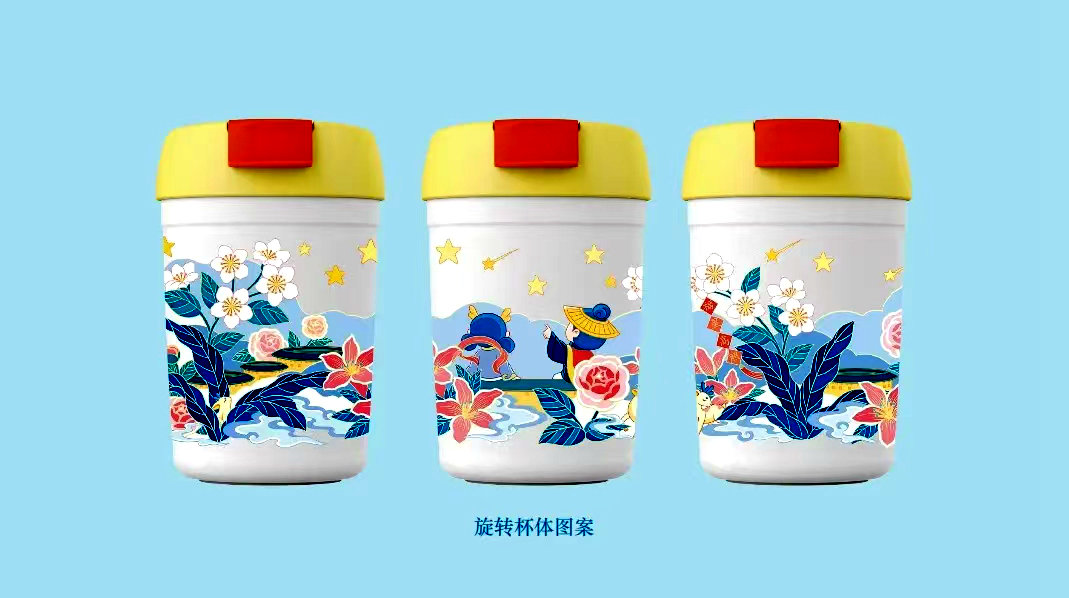 “福星高照—保溫杯”產品,通過永定?樓的形狀,融合客家風情的故事,使ip游玩于永定客家?樓的“場景”中。通過“?物”與“事件”兩個軸線 ,以“福?化”為原點聚焦永定?樓IP。