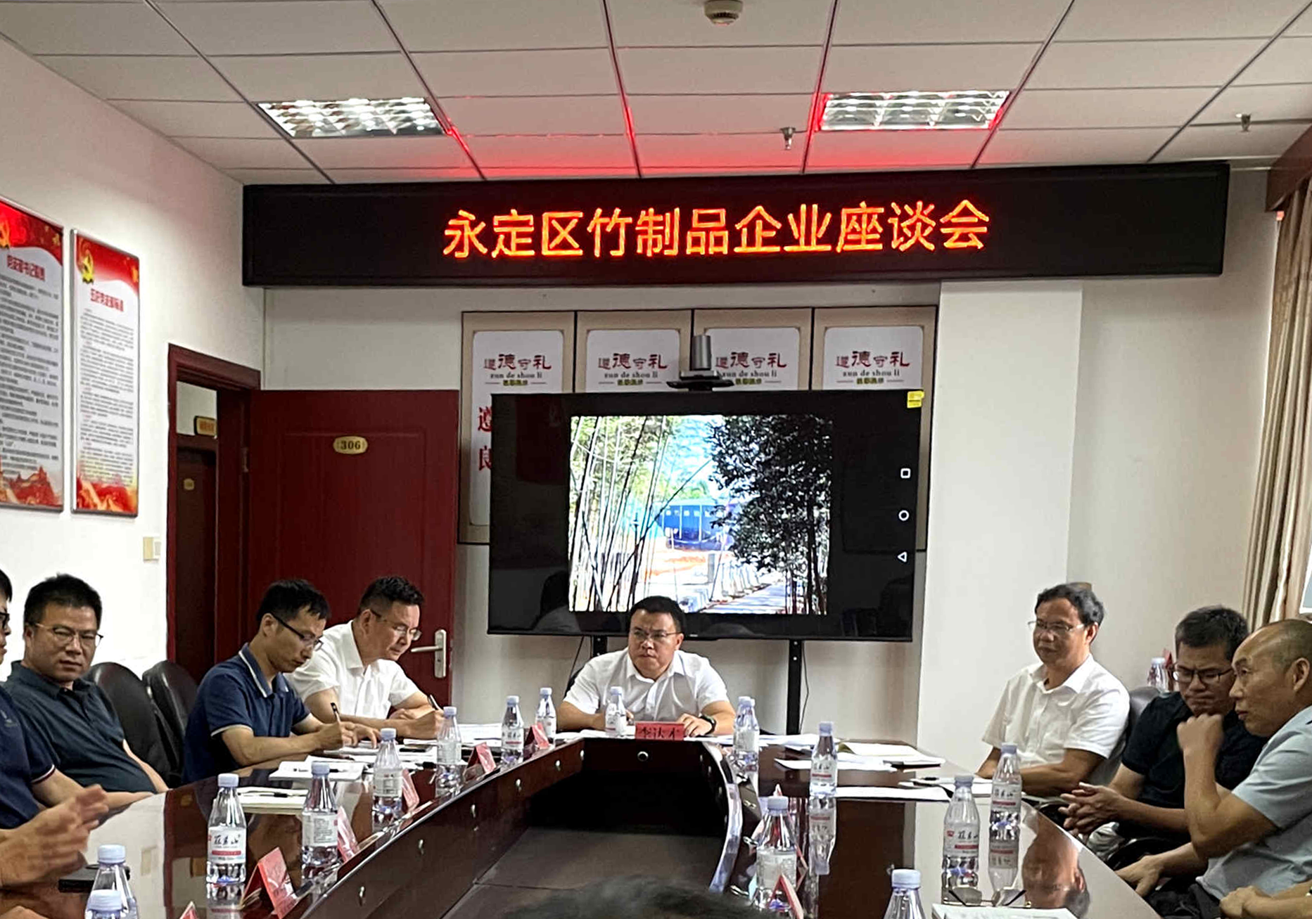 ▲ 8 月20日,副區(qū)長李達才主持召開全區(qū)竹制品企業(yè)座談會,對永定區(qū)竹產(chǎn)業(yè)工作提出具體要求,進一步明確竹產(chǎn)業(yè)發(fā)展思路和方向。會上,參會的區(qū)工信科技局、林業(yè)局、培豐鎮(zhèn)及轄區(qū)13家重點竹制品企業(yè)負責人圍繞竹產(chǎn)業(yè)發(fā)展進行交流探討。