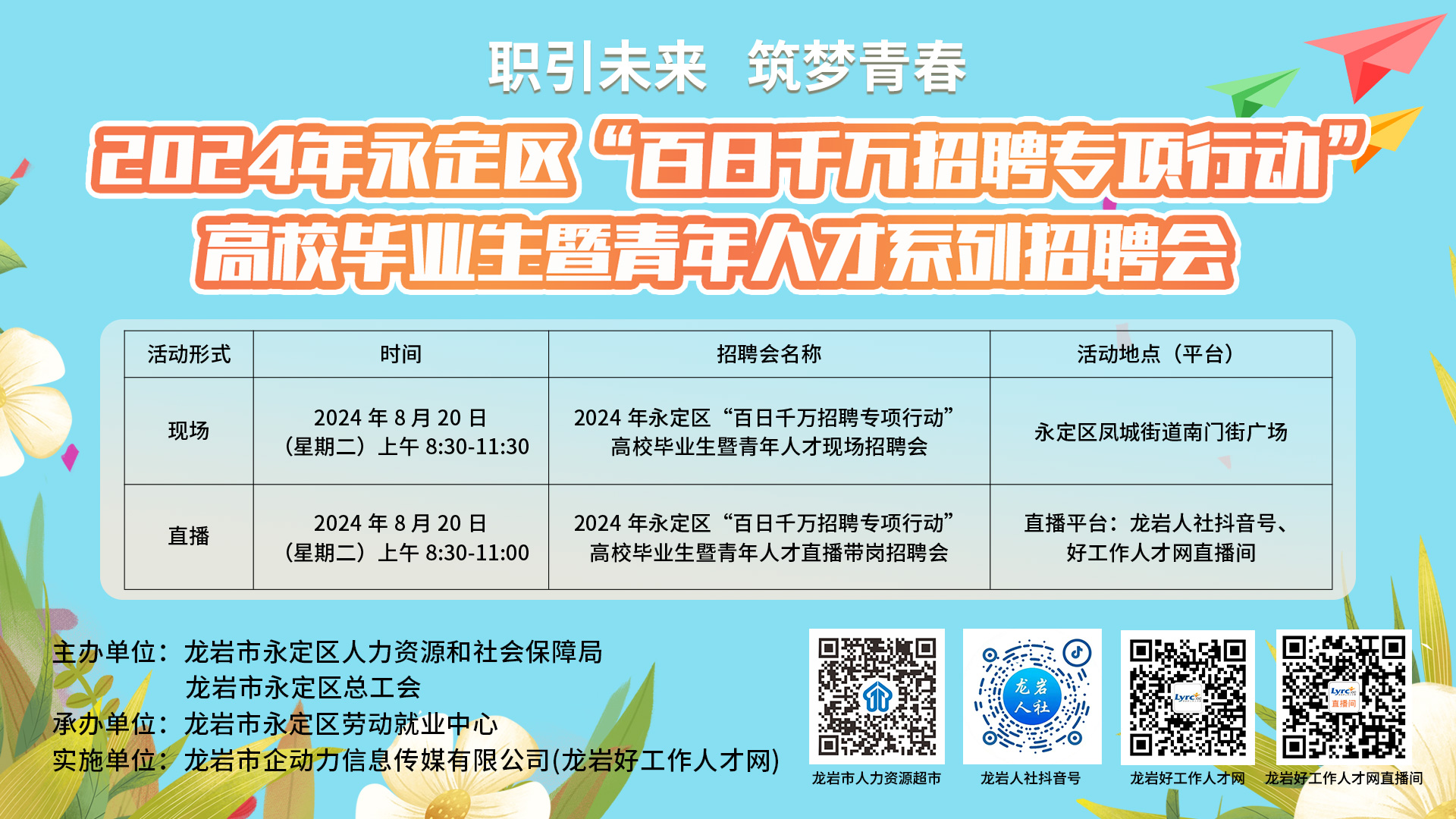 招聘會以“職引未來 筑夢青春”為主題,重點面向2024屆高校畢業(yè)生及往屆未就業(yè)高校畢業(yè)生,同時兼顧農(nóng)民工、城鎮(zhèn)失業(yè)人員、脫貧勞動力等各類勞動者,有招聘需求的各類用人單位。