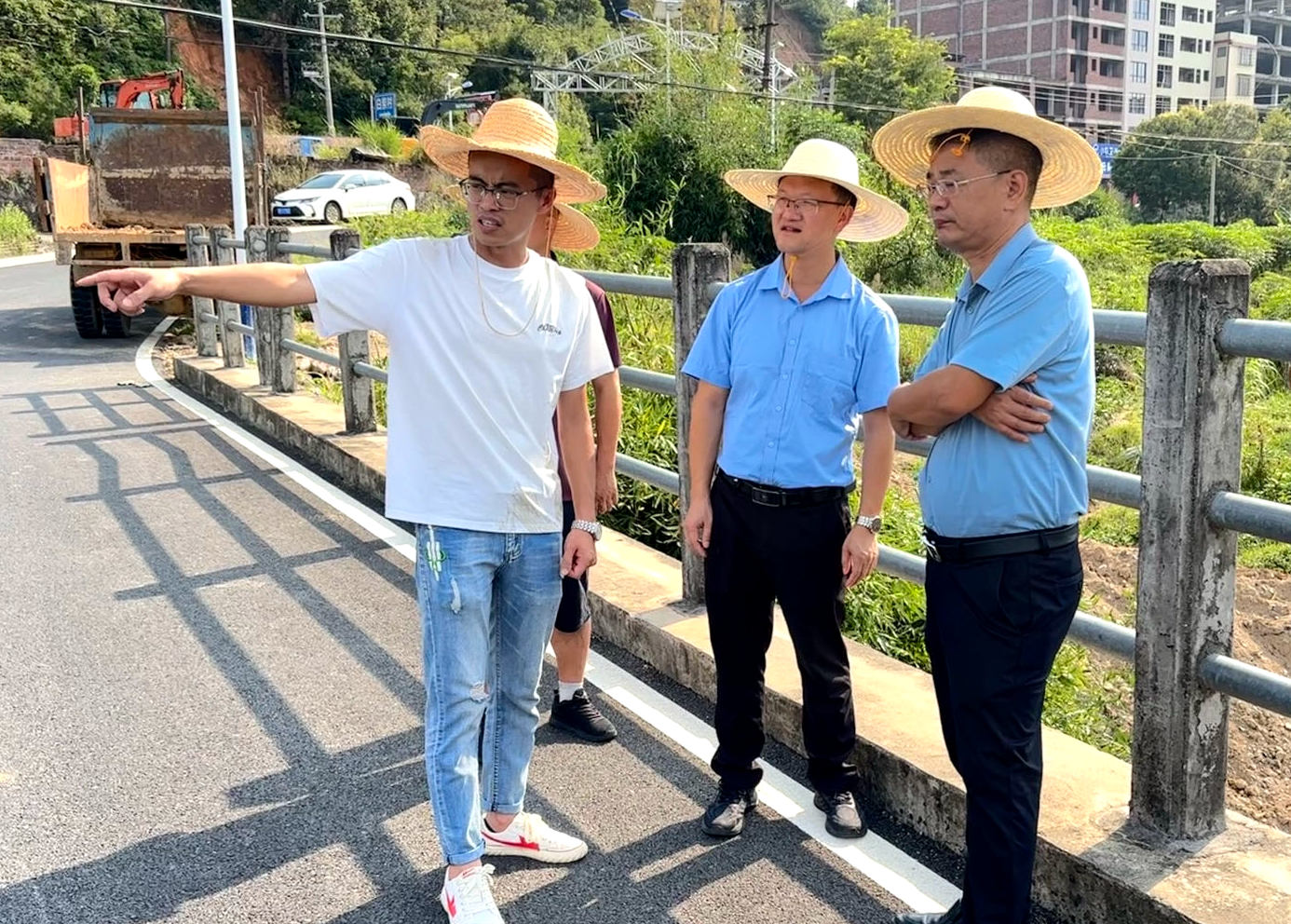 ▲ 9月2日,洪山鎮(zhèn)鎮(zhèn)長張忠誠帶隊前往洪山溪山洪溝、樟羅村集體磅房、蜜柚加工基地等項目施工現(xiàn)場,指導(dǎo)推進項目建設(shè)工作。