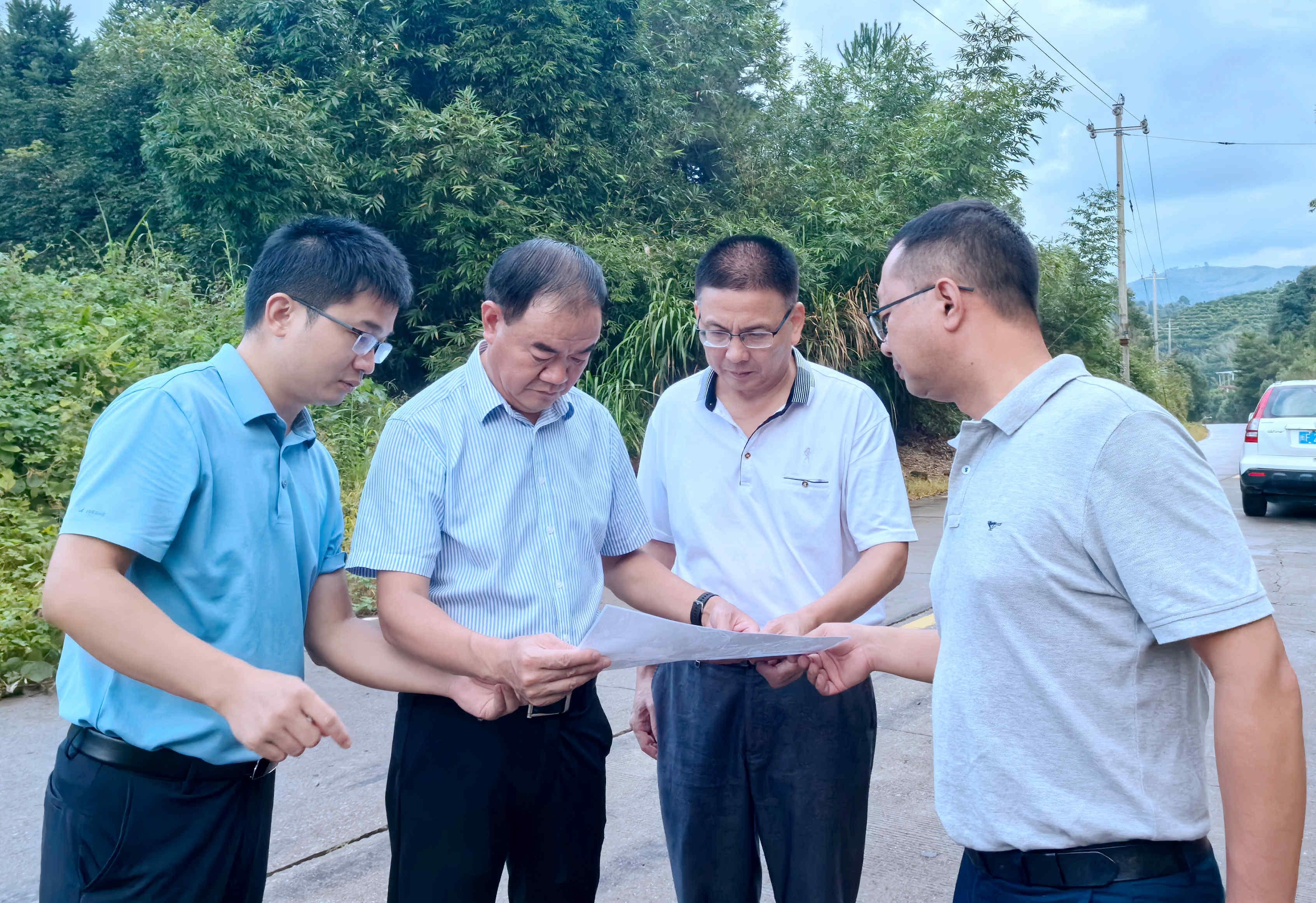 ▲ 9月5日,西溪鄉(xiāng)鄉(xiāng)長高貴、人大主席賴永勝帶隊前往光坑水庫項目現(xiàn)場,全力推進征地工作。