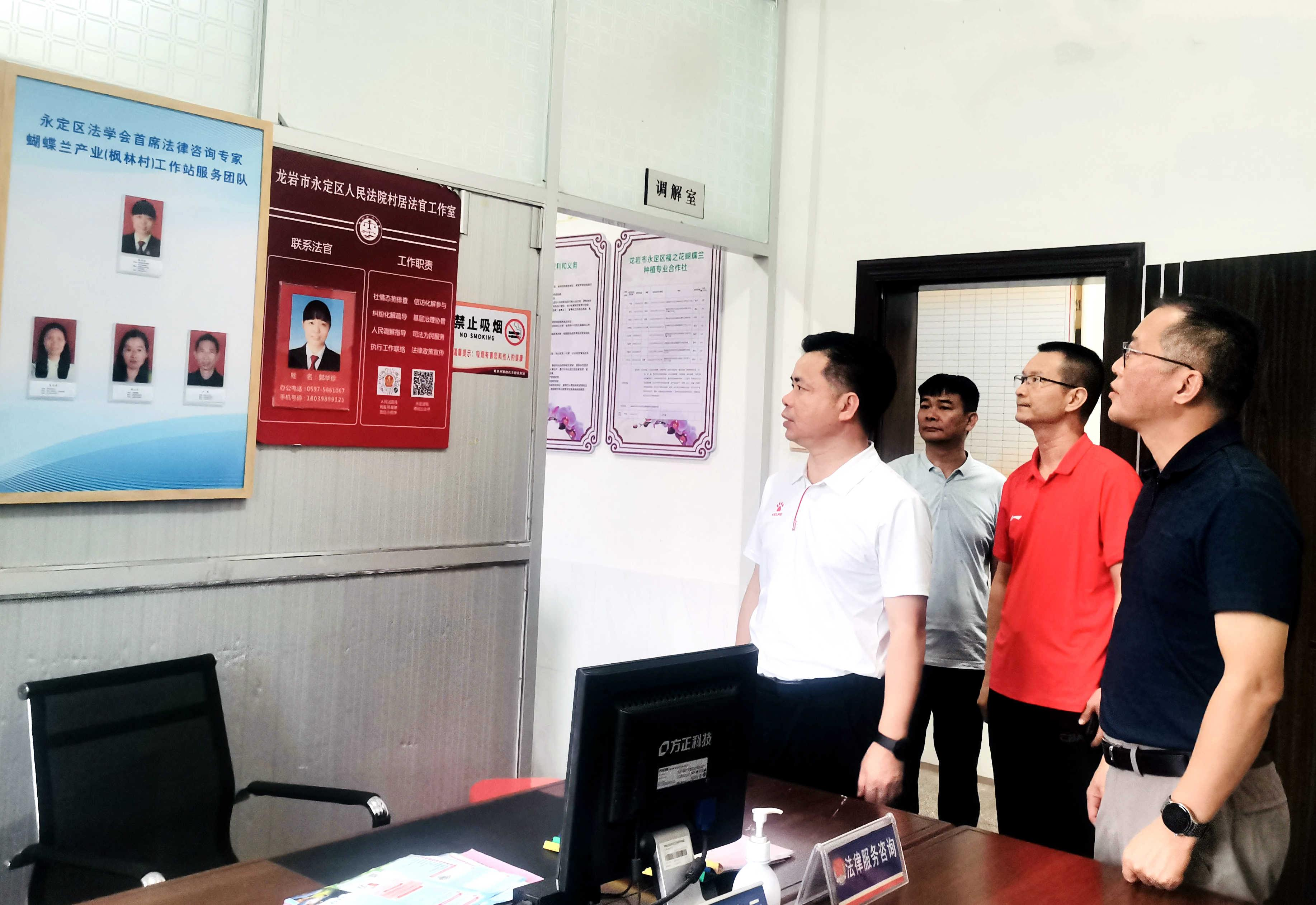 ▲ 9月5日,區(qū)委常委、政法委書記賴森元前往龍?zhí)舵?zhèn)楓林村調(diào)研福建省法學會首席法律咨詢專家蝴蝶蘭產(chǎn)業(yè)工作站創(chuàng)建工作,優(yōu)化法治化營商環(huán)境建設(shè),幫助民營企業(yè)從源頭避免或化解可能存在的風險隱患,解決企業(yè)發(fā)展中遇到的法律難題,助力企業(yè)良性發(fā)展。龍?zhí)舵?zhèn)黨委書記吳才開參加。