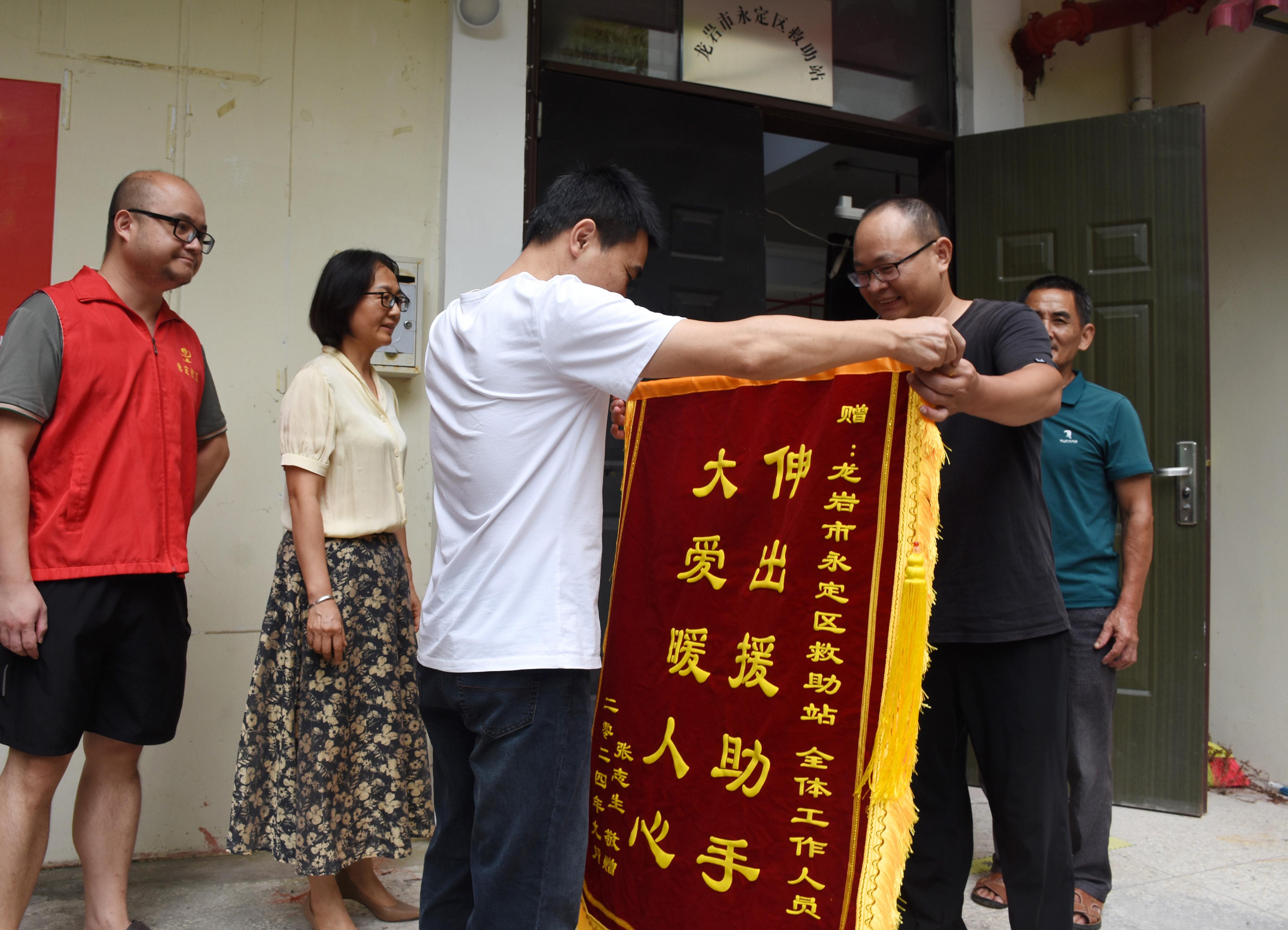 視頻加載中... 永定新聞網(wǎng)訊(李文艽 蘇高龍)9月19日,永定區(qū)救助站收到了救助對象家屬送來的錦旗,感謝他們無私救助,讓他們家人得以團聚。