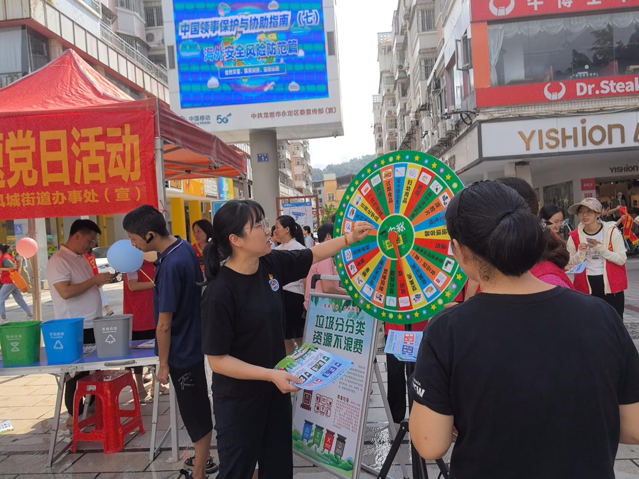 永定新聞網訊(張永英 葛月娥)9月27日,區城市管理和綜合執法局聯合鳳城街道、區直有關單位在南門商貿廣場開展“黨建引領新時尚 垃圾分類齊參與”主題黨日宣傳活動。