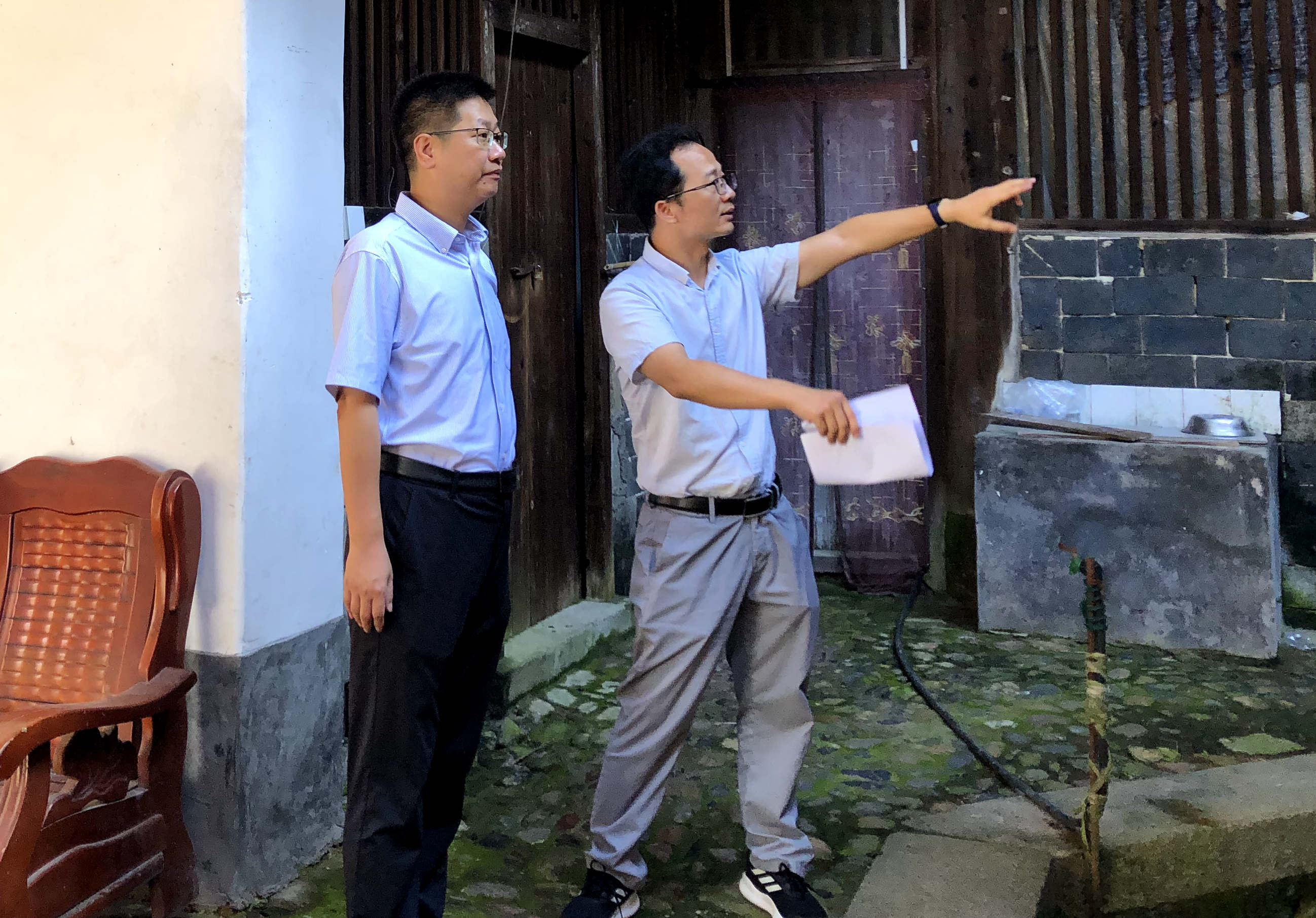 ▲ 9月26日,陳東鄉(xiāng)黨委書記謝萬鵬帶隊(duì)前往城東村、共星村推進(jìn)文物點(diǎn)土樓保護(hù)、人居環(huán)境整治、房屋安全隱患排查等工作。