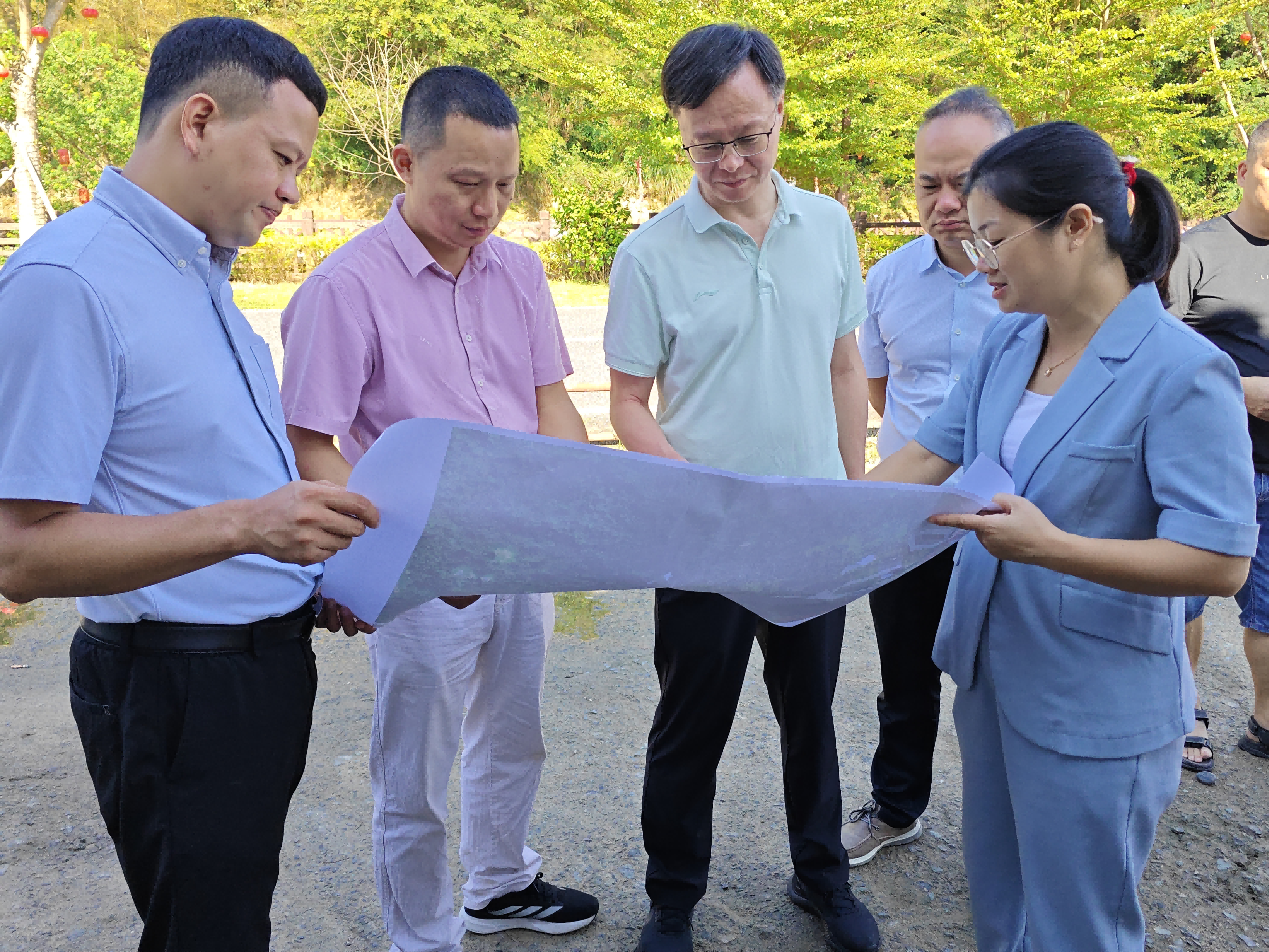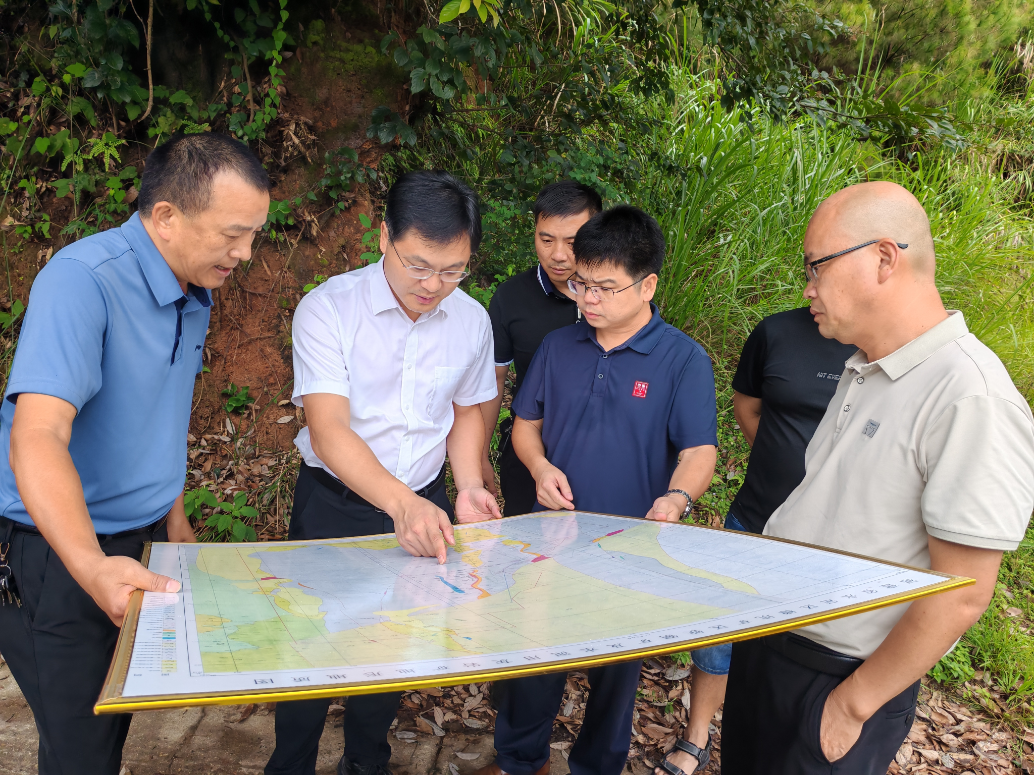 ▲ 9月25日,高陂鎮(zhèn)鎮(zhèn)長林文源組織自然資源、水利、村鎮(zhèn)建設(shè)等鎮(zhèn)直部門和相關(guān)村干部,會(huì)同龍巖南部新城集團(tuán)龍耀公司,現(xiàn)場踏勘高陂鎮(zhèn)防洪排澇工程規(guī)劃情況,對現(xiàn)有設(shè)計(jì)方案提出優(yōu)化意見,以提升項(xiàng)目建成后的實(shí)際效果和效能。