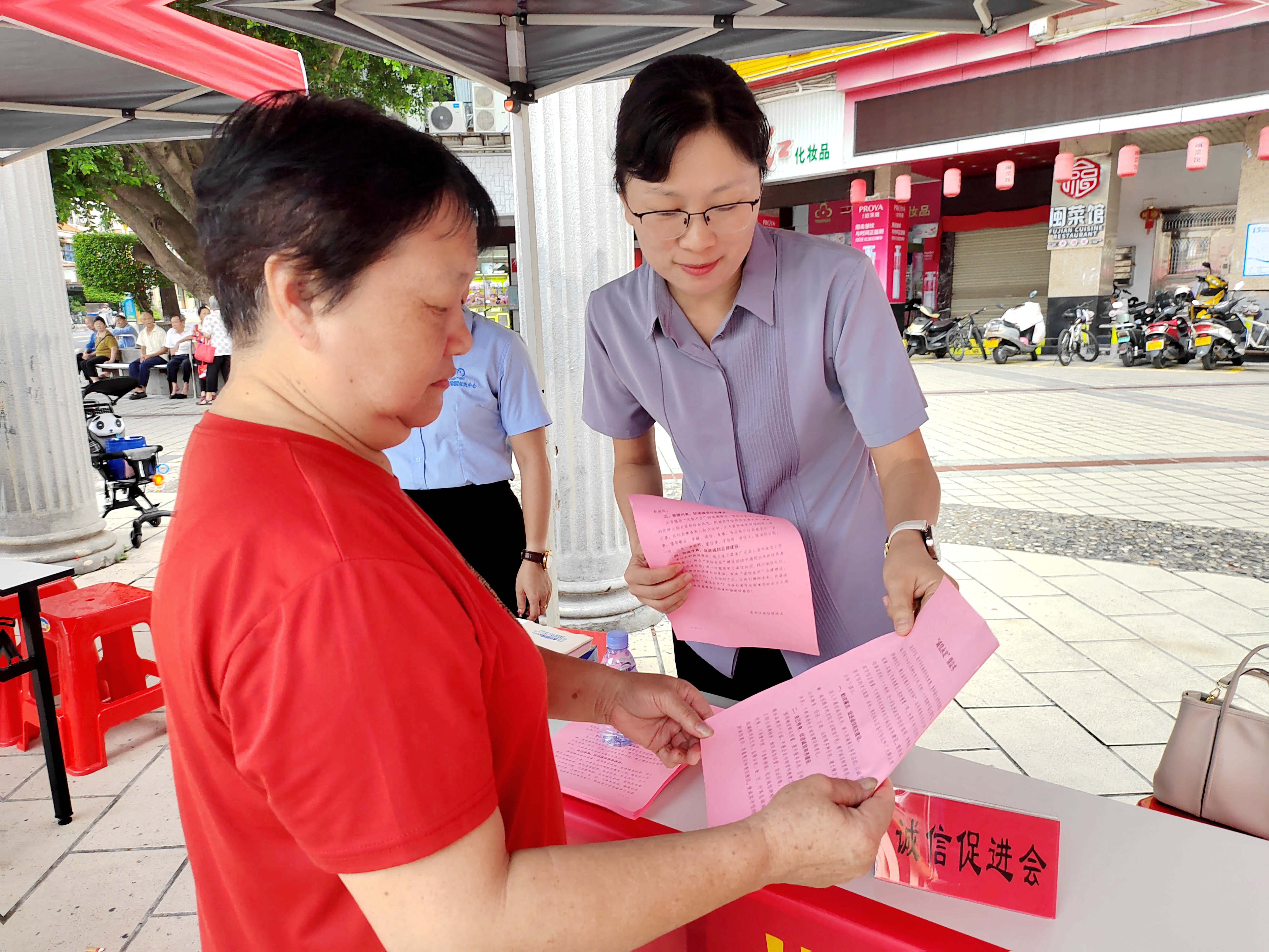 ▲ 9月26日,永定區(qū)誠信促進(jìn)會(huì)以第三屆“全國個(gè)體工商戶服務(wù)月”為契機(jī),在南門商貿(mào)廣場開展“誠信永定”宣傳,與市民零距離、面對面講解誠信的重要性,普及信用知識,提倡“勤政廉潔,促進(jìn)誠信機(jī)關(guān)建設(shè);克己修身,促進(jìn)誠信商務(wù)建設(shè);崇德向善,促進(jìn)誠信社會(huì)建設(shè);抱誠守真,促進(jìn)誠信品牌建設(shè)”,讓誠信理念深入人心,共謀誠信發(fā)展,共創(chuàng)“誠信永定”,努力打造更加公平、公正、誠信、有序的市場環(huán)境和營商環(huán)境。