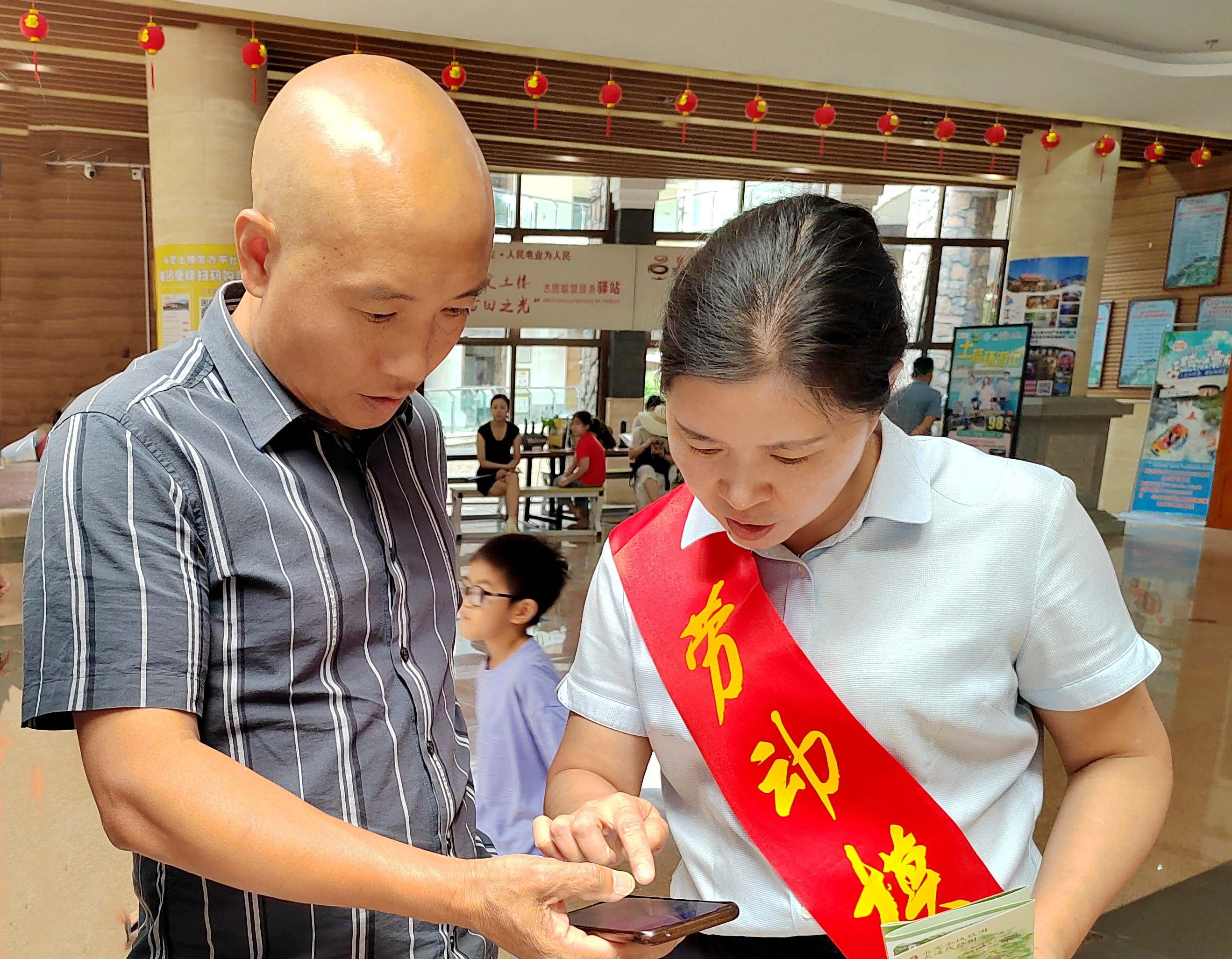 ▲ 龍巖市勞動模范賴桂榮為游客釋疑解惑。 在永定土樓王子景區游客服務中心,筆者見到龍巖市勞動模范、福建省客家土樓旅游發展有限公司副總經理賴桂榮時,她身披綬帶,面帶微笑,正在認真耐心地解答游客的問題,方便游客能夠快速購票,順利進入景區。雖然她平時沒有在這里值班,但節假日會到這里幫忙。賴桂榮說:“有些游客在購票過程中遇到問題,就會過來詢問,我們都以飽滿的熱情、溫馨的話語為他們服務,讓游客感受到了家的溫暖和貼心的關懷?!?/span>