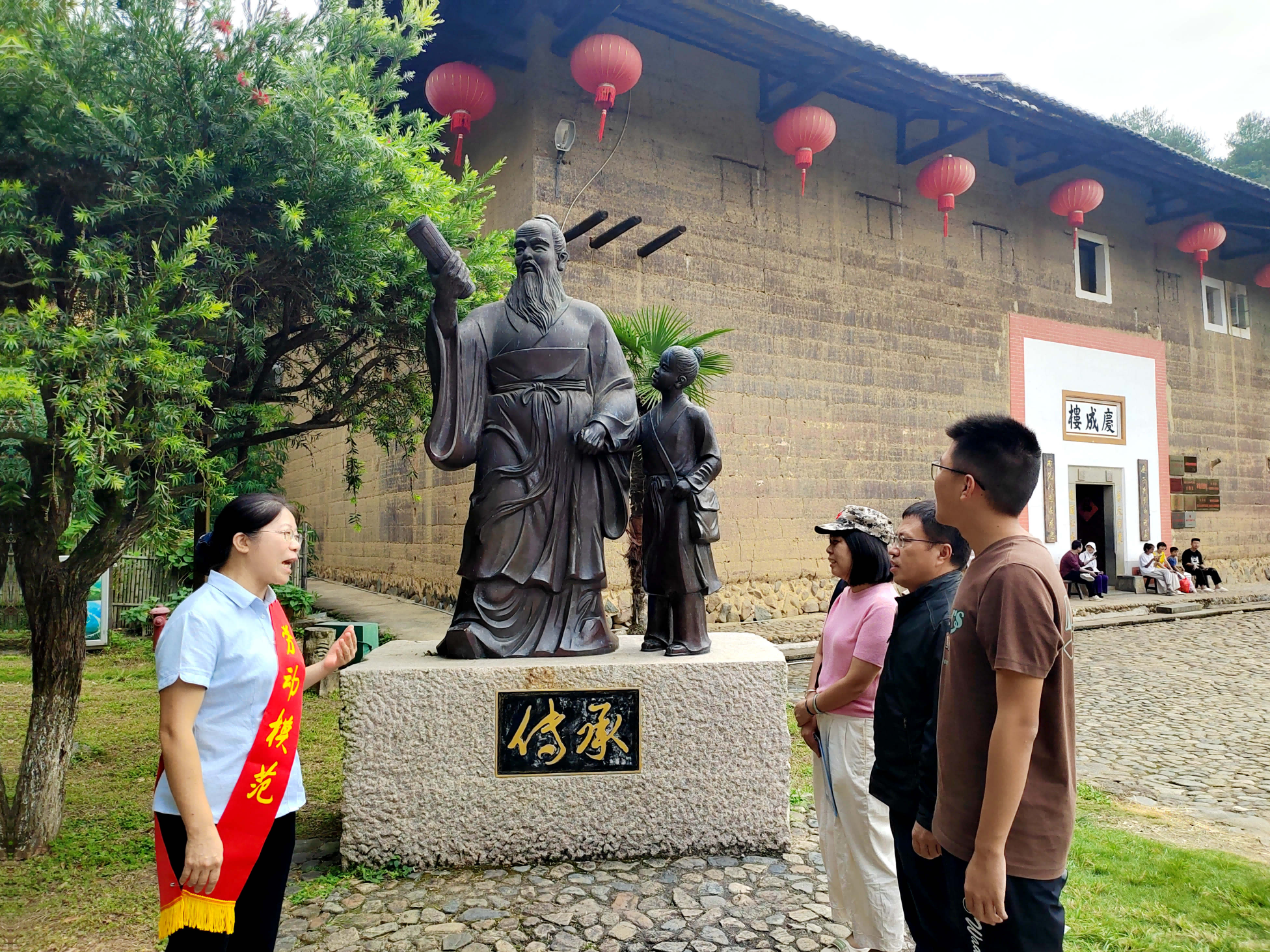 ▲ 福建省勞動模范黃小娜為游客講解客家家訓。 “家是最小國,國是千萬家。”在客家家訓館,福建省勞動模范、景區講解員黃小娜為游客深情地講述著深厚的客家家訓。“這些祖訓家規涵蓋了‘孝悌、忠信、禮義、廉恥’,是對中華優秀文化的一種傳承,對我們每個人都能夠起到潛移默化的教育作用?!彼鷦拥闹v解吸引不少游客跟隨聆聽,不時互動,有的邊聆聽、邊細細觀看展品,了解客家家訓的文化內涵。