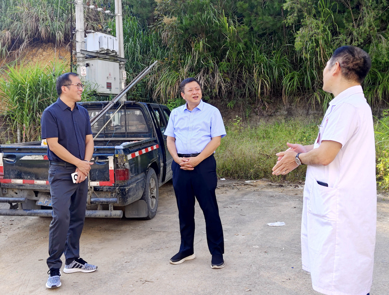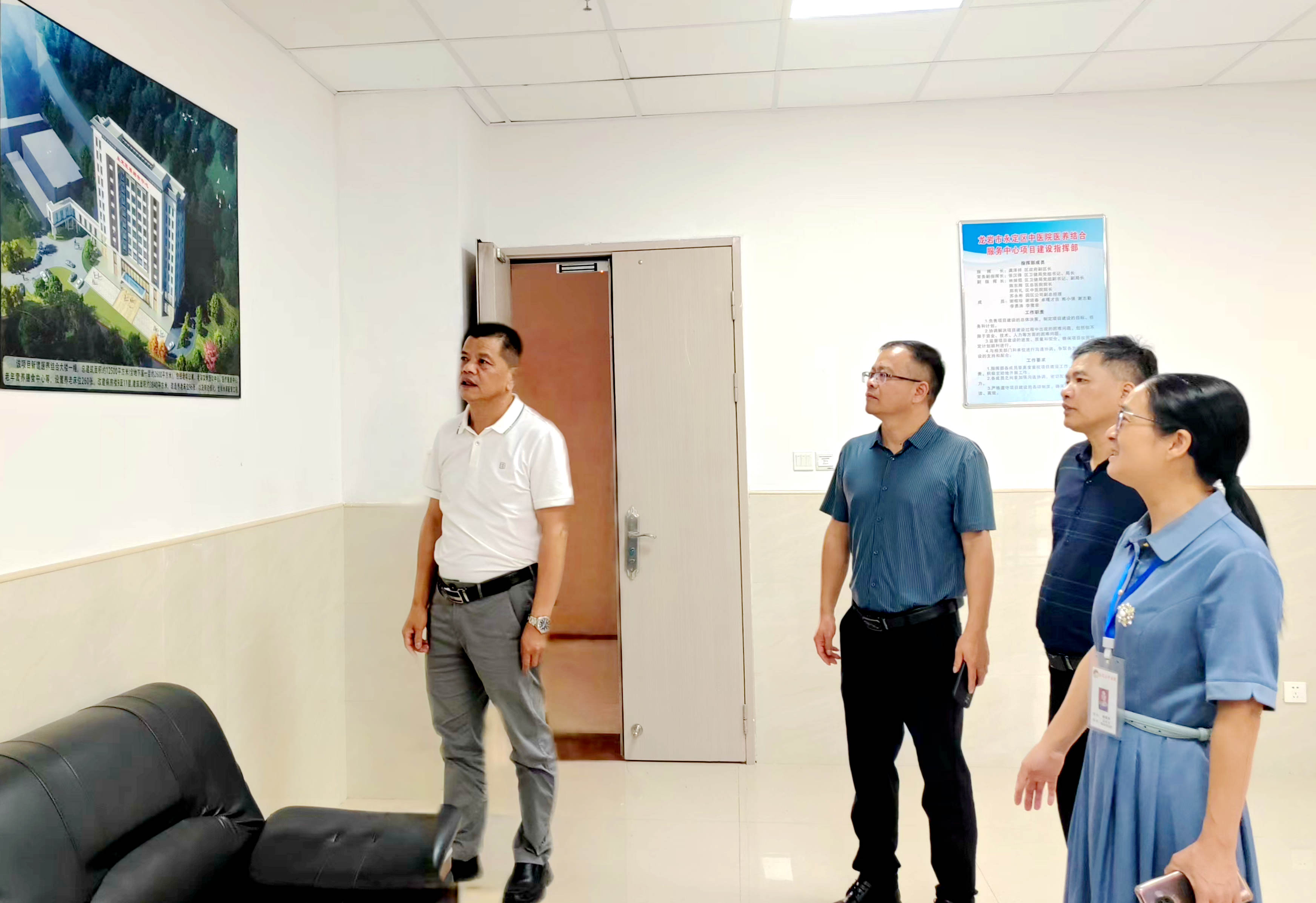 ▲ 10月14日,區(qū)委常委、區(qū)政府副區(qū)長(zhǎng)毛四勤帶隊(duì)到龍?zhí)舵?zhèn)衛(wèi)生院,實(shí)地察看省能化集團(tuán)掛鉤幫扶的龍?zhí)舵?zhèn)衛(wèi)生院綜合樓建設(shè)項(xiàng)目,詳細(xì)了解進(jìn)展情況,并現(xiàn)場(chǎng)協(xié)調(diào)解決存在的困難和問題。龍?zhí)舵?zhèn)黨委書記吳才開參加。