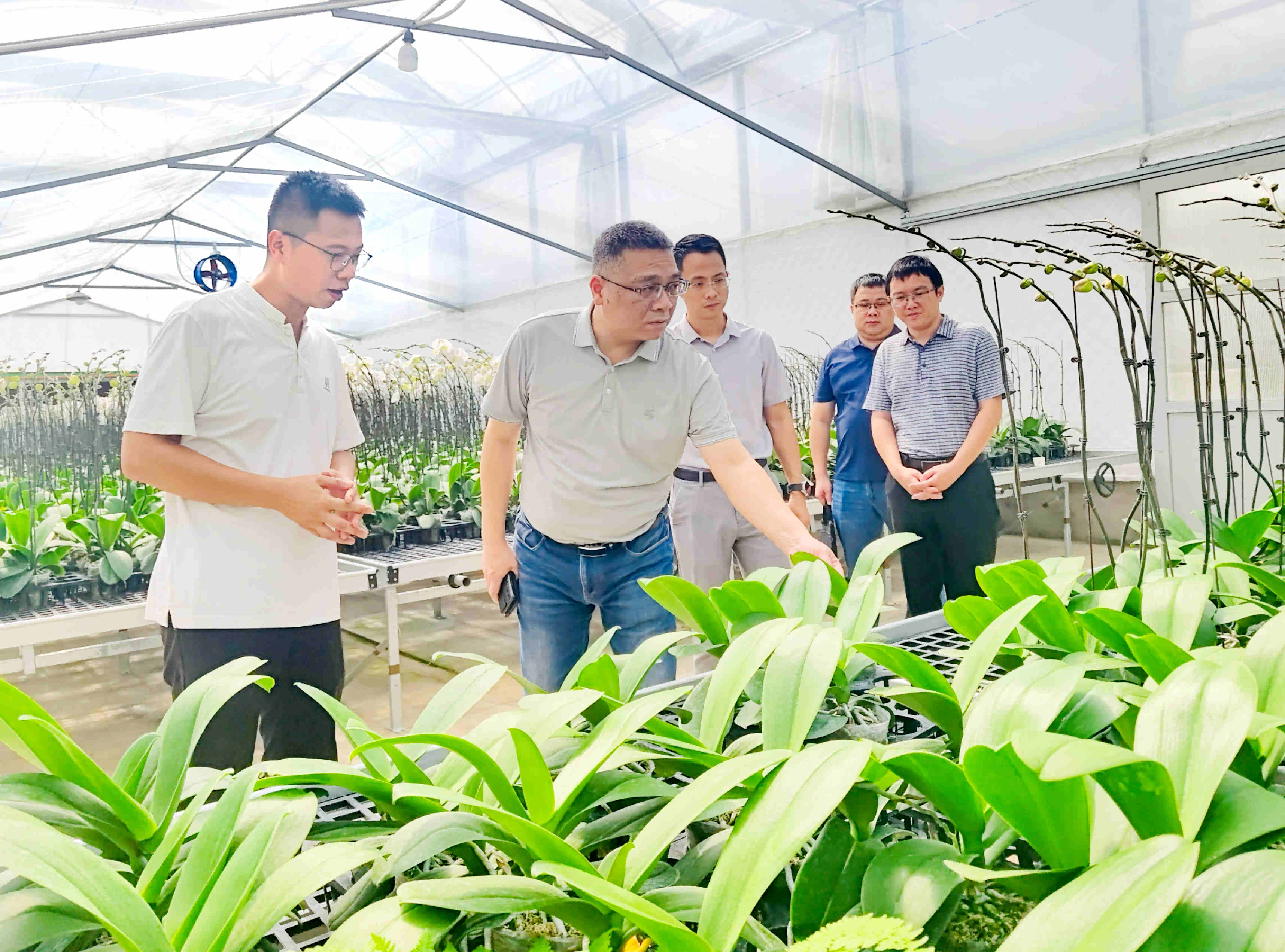 ▲ 10月18日,龍巖市蘇區(qū)振興發(fā)展服務(wù)中心副主任徐志鵬帶隊(duì)到永定區(qū)龍?zhí)舵?zhèn)調(diào)研對(duì)口合作工作,了解蝴蝶蘭產(chǎn)業(yè)發(fā)展情況,與企業(yè)進(jìn)行溝通交流,聽取企業(yè)的需求和建議。