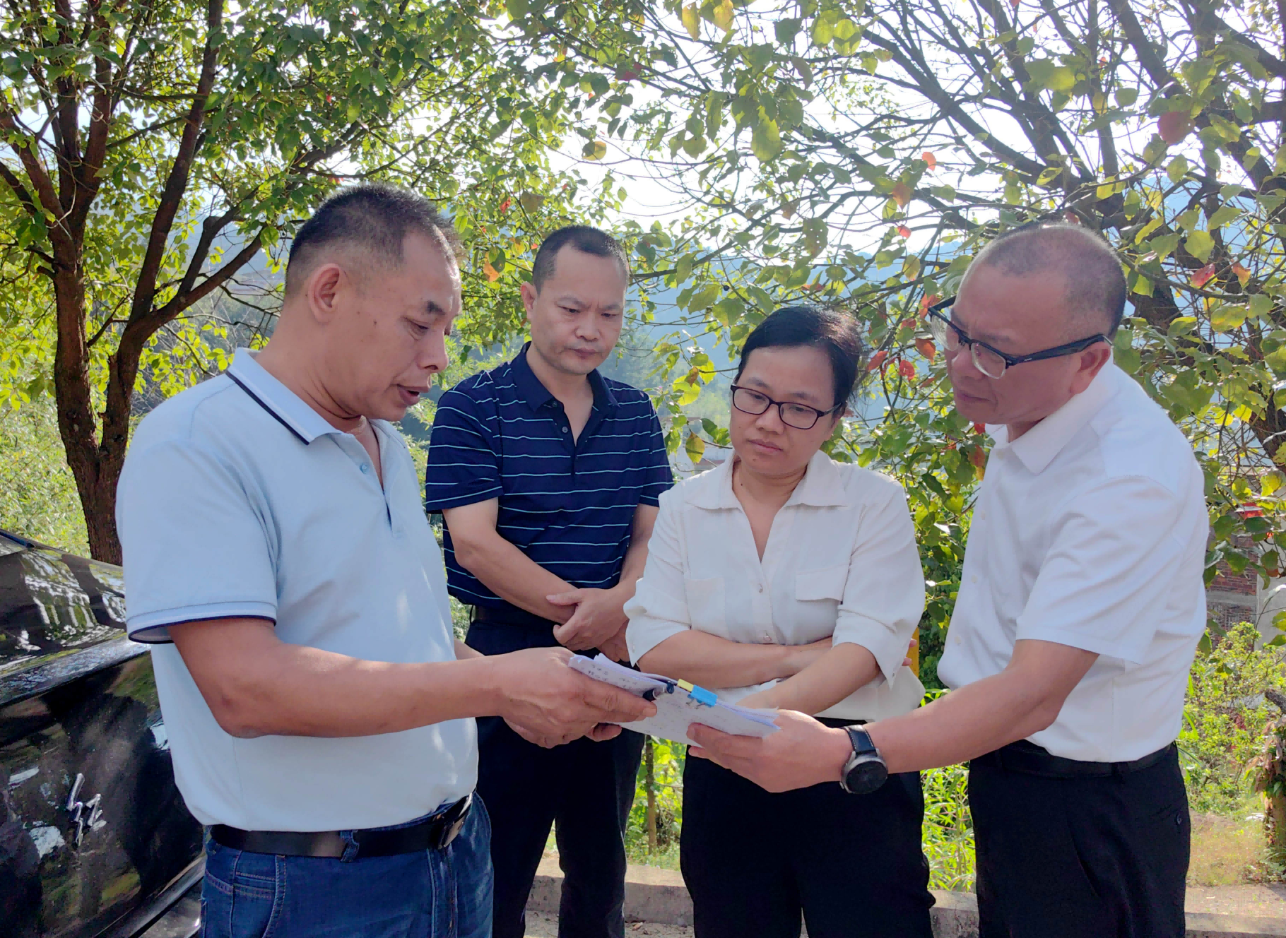 ▲ 10月16日,福建省自然資源廳總規(guī)劃師傅林一行到永定區(qū)開展要素保障現(xiàn)場(chǎng)辦公,實(shí)地察看永定區(qū)永定紅石材綜合加工建設(shè)(二期)、永定區(qū)光坑水庫等項(xiàng)目,聽取關(guān)于項(xiàng)目要素保障工作情況的匯報(bào),現(xiàn)場(chǎng)就項(xiàng)目用地報(bào)批存在的問題進(jìn)行解釋、答疑,指導(dǎo)破解問題及組卷審查等報(bào)批各環(huán)節(jié)的工作。
