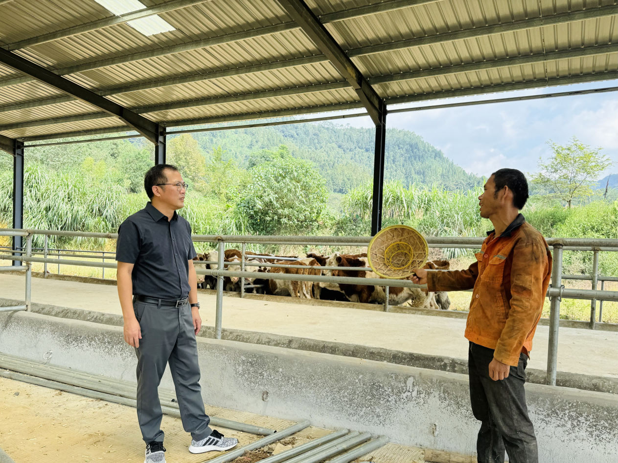 ▲ 10月14日,龍?zhí)舵?zhèn)黨委書記吳才開帶隊(duì)實(shí)地了解龍?zhí)度馀I鷳B(tài)養(yǎng)殖、牧草種植及牛文化觀光一體化建設(shè)等牛產(chǎn)業(yè)項(xiàng)目推進(jìn)情況,解決永群農(nóng)業(yè)公司、牛鼎農(nóng)業(yè)公司提出的困難和問題,確保項(xiàng)目高質(zhì)高效推進(jìn)。