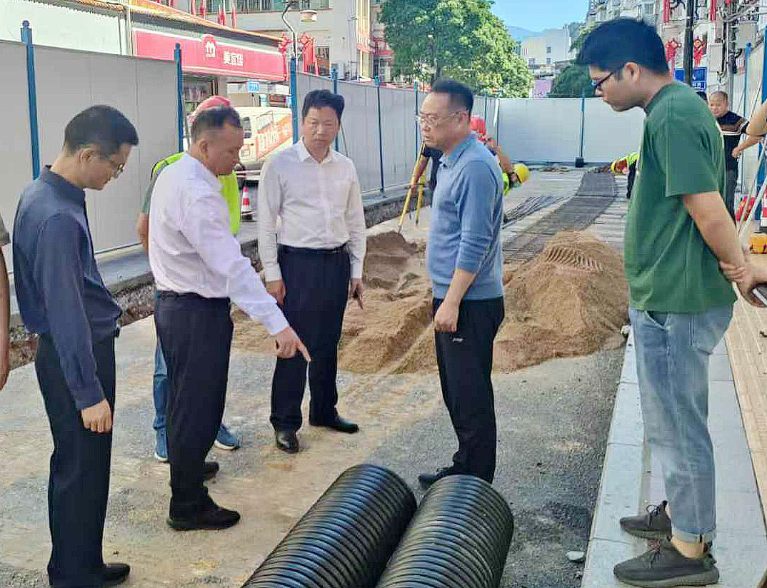 ▲ 11月8日,區委常委、副區長王文龍前往永定二中門口、西溪河、南門街、東大道、寨下等施工現場,調研城區污水提質增效項目建設相關項目。區住建局局長林茂月參加。