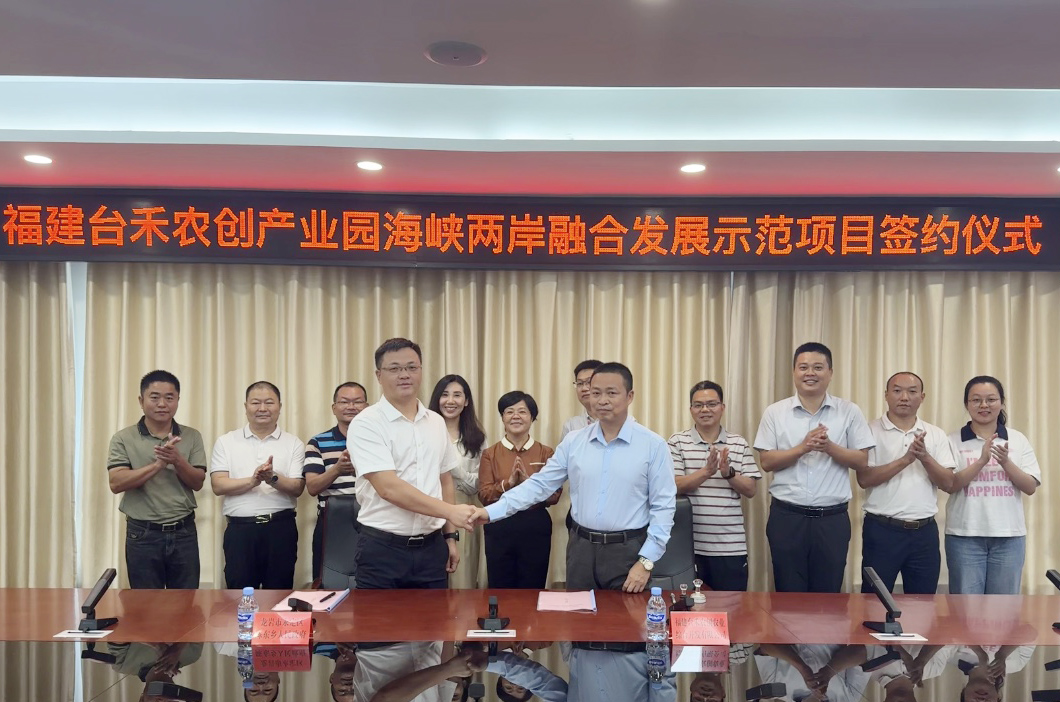 ▲ 11月5日,福建臺禾農創產業園海峽兩岸融合發展示范項目簽約。區政府副區長溫福英參加。據悉,該項目由陳東鄉、區農業農村局共同招商引進。區政府辦、區委臺辦、區商務局、農業農村局和陳東鄉相關負責人參加簽約。