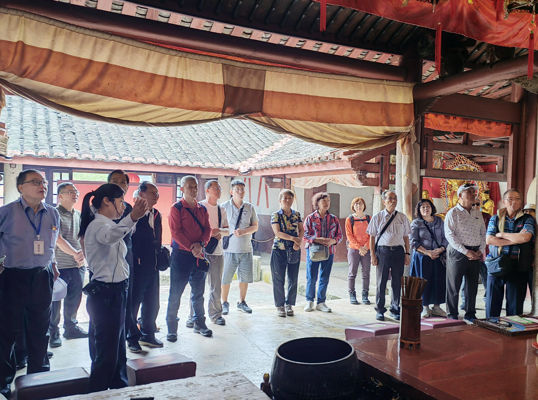 ▲ 11月10日,區(qū)委臺辦負(fù)責(zé)人對接臺灣彰化汀州會館、臺灣淡水鄞山寺定光佛文化代表團一行22人參訪金砂鎮(zhèn)金谷寺定光佛祖廟,祭拜定光古佛。定光古佛被譽為“客家人的保護神”。據(jù)考證,清朝嘉慶年間,金砂鎮(zhèn)西湖寨張化孫的后裔遷居臺灣彰化縣,將定光古佛的分身帶到彰化縣八卦山大佛寺、新北縣淡水鄞山寺供奉,金砂鎮(zhèn)金谷寺定光佛由此成為大佛寺、鄞山寺的祖廟,增進了永臺民間信仰交流。