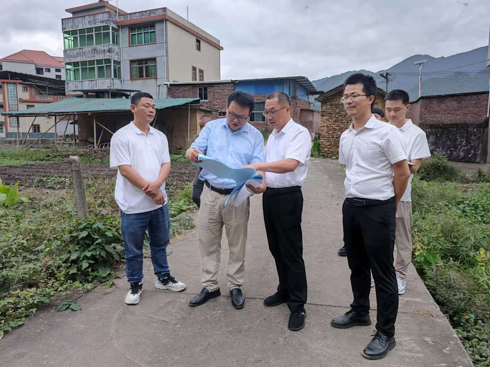 ▲ 11月11日,湖坑鎮(zhèn)黨委副書記、鎮(zhèn)長許文華前往六聯(lián)村推進市級美麗宜居村莊建設(shè)工作。