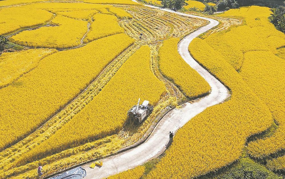 日前,在龍巖市永定區洪山鎮的稻田里,收割機正在作業。今年,洪山鎮水稻種植面積8300余畝,畝產可達650多公斤。近年來,當地大力發展現代特色農業及水稻等優勢農業,指導種植戶推廣全程機械化作業,科學防治水稻病蟲害,統一田間管理,走出一條產業發展助力鄉村振興的新路子。黃秋萍 張建煒 游慶輝 攝