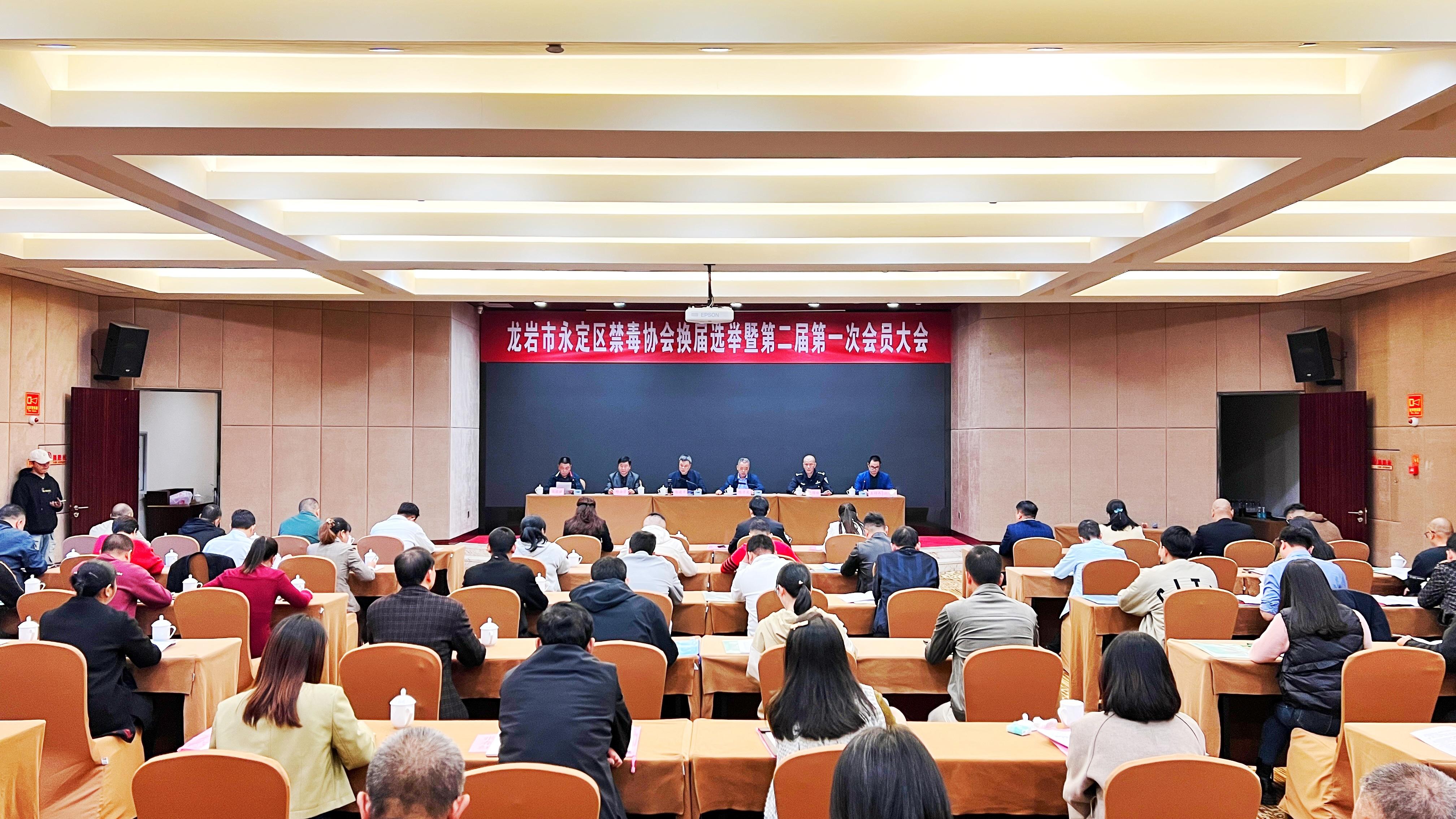 會上,禁毒協會負責人代表第一屆理事會作了工作報告,總結了協會在禁毒宣傳、戒毒幫扶、社會化禁毒等方面的成效。審議并通過了《永定區禁毒協會章程(草案)》。與會會員通過無記名投票方式選舉出新一屆理事會會長、理事、監事及主要負責人,新一屆永定區禁毒協會會長由龍巖市騰達彩印工貿有限公司董事長江日旺同志擔任。