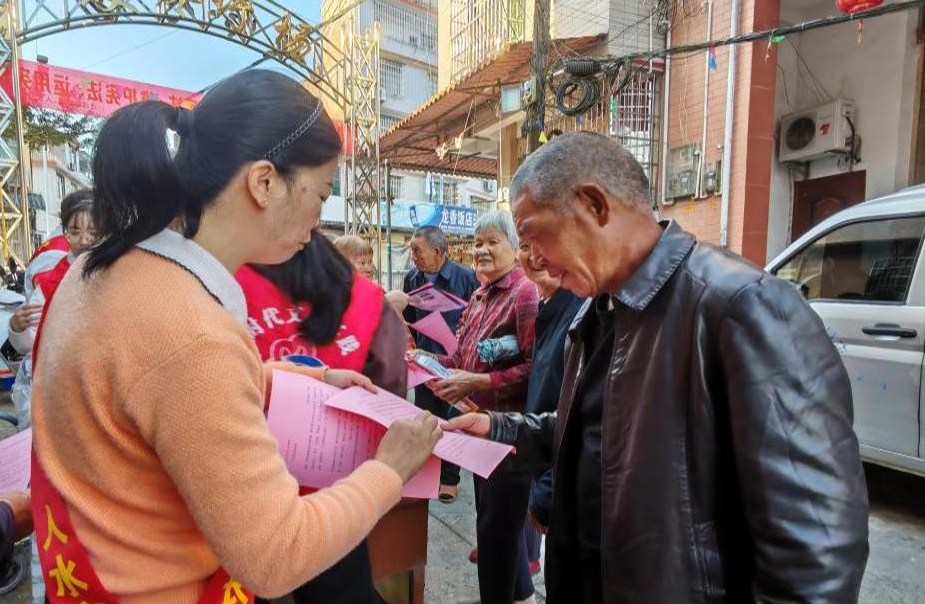 志愿者們一邊向群眾發放宣傳材料,一邊向群眾詳細講解河湖長制內容及推行河湖長制的意義和作用,呼吁大家增強保護河湖意識,不向河湖內傾倒垃圾,不侵占河道,不向河道排放臭水、污水,不進行電魚、毒魚、炸魚,要愛護水利工程設施,不毀壞堤防、護岸等河道配套設施,不損毀公示牌等涉水標識,積極參與到水環境保護中來,共同守護我們的綠水青山。