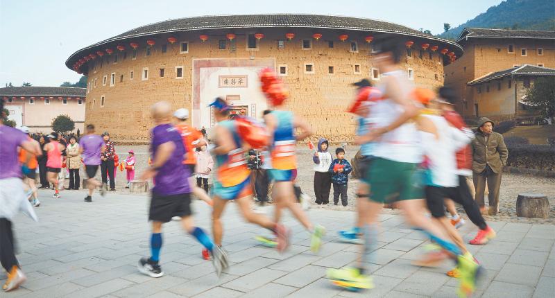 參賽選手從土樓前跑過