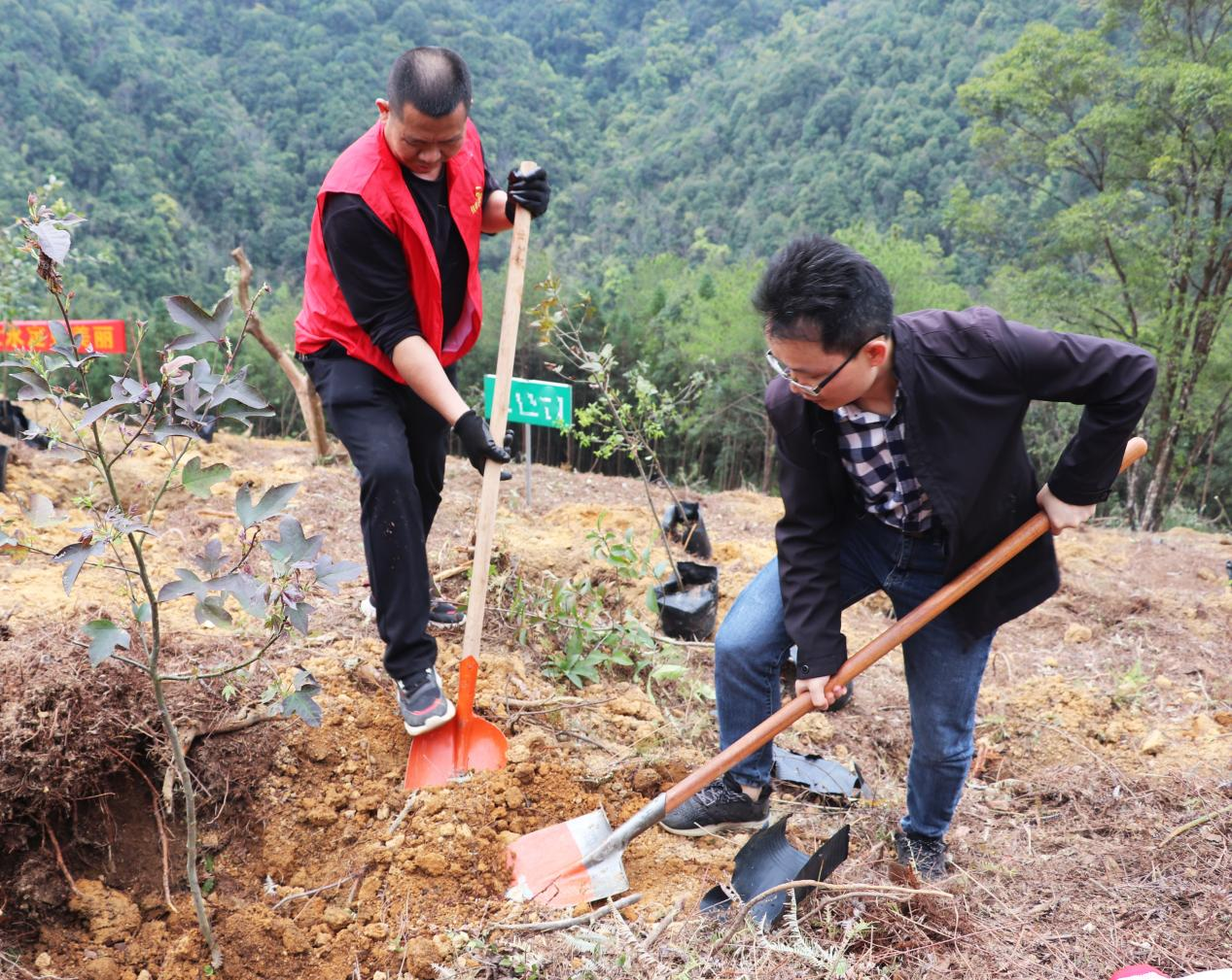 活動現場人頭攢動,志愿者們揮舞鋤頭,墩好樹苗,刨土、填坑、踩實,種下紅楓、黃柏、櫻花等樹種100余株。“助永定山河添綠,促永定城鄉美化,這種活動很有意義。”區住建局志愿者沈漢和說。